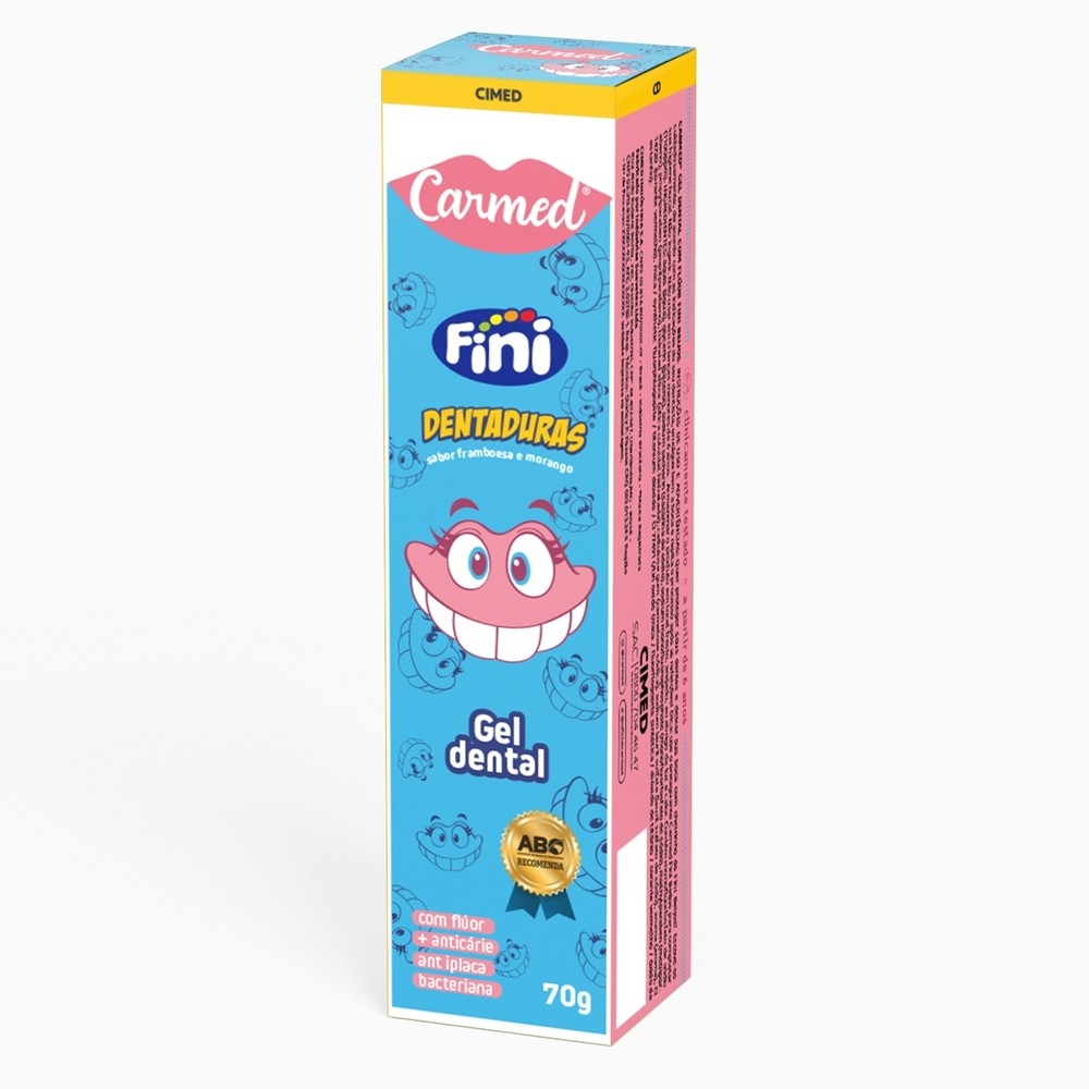 Gel Dental Carmed Fini Dentadura 70G Gel Dental Fini Dentaduras - Carmed O Gel Dental Carmed Fini Dentaduras proporciona um hálito fresco e dentes mais saudáveis. Com sabor suave e agradável, é ideal para quem busca uma limpeza eficaz e proteção contra as cáries. A embalagem prática oferece o equilíbrio perfeito entre qualidade e durabilidade para o cuidado diário bucal. Experimente a sensação de frescor com Carmed Fini Dentaduras! O gel dental combina cuidado bucal com a alegria de um sabor inspirado nos famosos doces Fini. Esta pasta de dente promove a limpeza eficiente e proteção dos dentes de forma suave, além de ser enriquecida com ingredientes que ajudam a prevenir cáries. Benefícios do Gel Dental Carmed Fini dentadura - Sabor Agradável: Com o sabor inspirado no doce "Fini dentadura", o gel dental conquista o paladar, incentivando a escovação diária. - Proteção Contra Cáries: A fórmula contém flúor, que é essencial na prevenção das cáries e no fortalecimento do esmalte dental. - Aroma Suave e Refrescante: O Gel Dental Carmed Fini dentadura proporciona uma experiência agradável, deixando a boca com sensação de frescor e limpeza. - Textura e Cor Divertidas: Com textura em gel e uma coloração atraente, tornando a escovação em um momento prazeroso. Por que Escolher o Gel Dental Carmed Fini dentadura? Cuidar da saúde bucal é fundamental para o crescimento saudável e a formação de bons hábitos. O Gel Dental Carmed Fini dentadura foi criado para unir proteção eficaz. Esta pasta de dente promove a limpeza eficiente e proteção dos dentes de forma suave, além de ser enriquecida com ingredientes que ajudam a prevenir cáries. Modo de usar Para obter o melhor resultado, aplique uma pequena quantidade do Gel Dental Carmed Fini Dentaduras na escova de dentes. Escove os dentes por pelo menos 2 minutos, três vezes ao dia, após as refeições ou conforme a orientação do seu dentista. Enxágue bem após o uso. Perguntas frequentes 1. Este gel dental tem sabor forte? Não, ele tem um sabor suave e agradável de detaduras, ideal para quem prefere algo mais leve. 2. Posso usar o Gel Dental Carmed Fini Dentaduras todos os dias? Sim, ele foi desenvolvido para o uso diário, proporcionando limpeza e frescor constantes.
