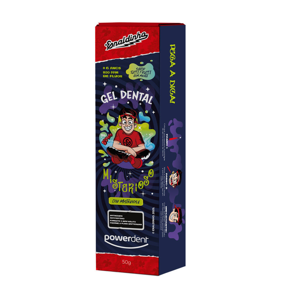 Seus filhos adoram o Enaldinho? Agora eles vão amar escovar os dentes com o Gel Dental Misterioso Powerdent! Desenvolvido especialmente para os fãs do youtuber e para tornar a higiene bucal mais empol