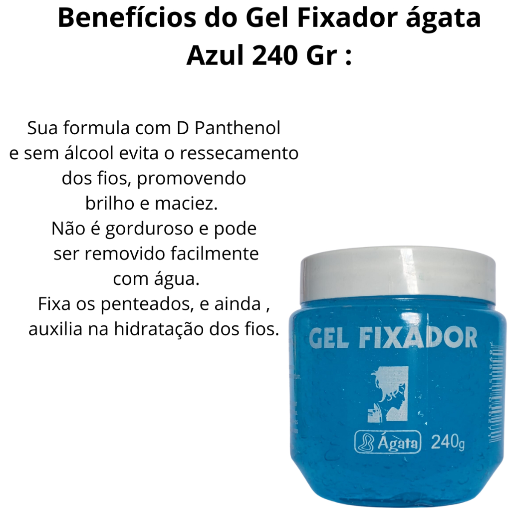 Gel Fixador Ágata Azul 240 Gr - Gel Fixador - Gel Para Cabelo - Gel Para Penteados - Gel de Cabelo