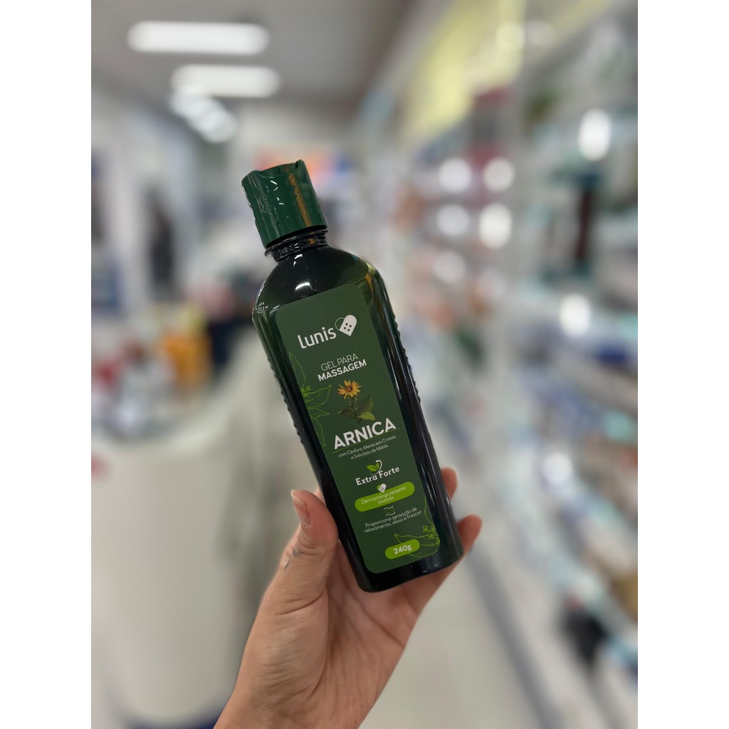 *Produto Original* *Atenção:* Venda exclusiva para pessoa física. Pedidos com CNPJ serão cancelados. Gel Para Massagem Arnica Extra Forte Lunis 240g O Gel de Arnica Extra Forte Lunis Bem Cuidar é ideal para massagens relaxantes, proporcionando uma agradável sensação de refrescância na pele. Sua fórmula contém arnica, mentol e cânfora, ingredientes conhecidos por seu efeito revigorante e refrescante. Modo de usar: Aplique na pele com movimentos circulares até completa absorção. Uso externo. Diferenciais do produto: ✔ Dermatologicamente testado ✔ Sensação refrescante e revigorante ✔ Textura leve e de rápida absorção ✔ Combinação de arnica, mentol e cânfora