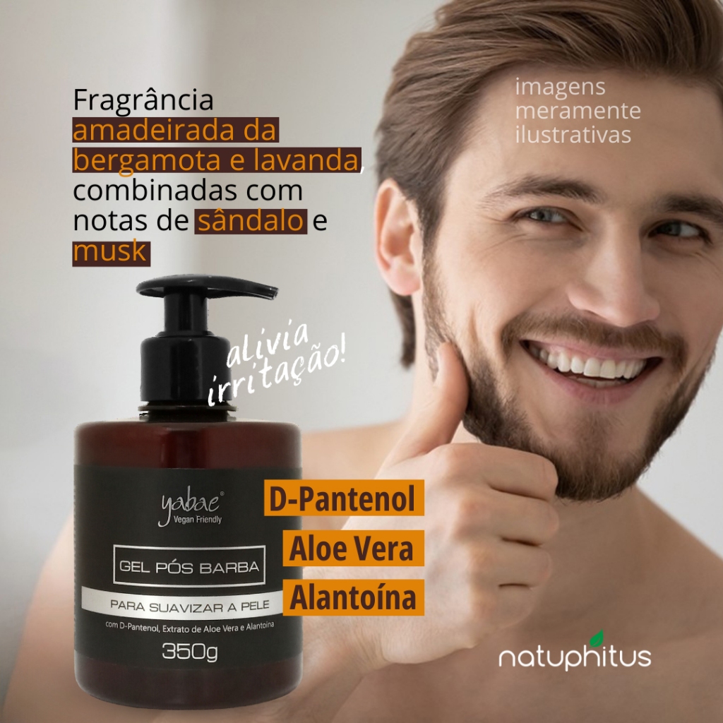 Gel Pós Barba - Yabae Alívio da Irritação Causada Pelo Barbear 📌 Fragrância Refrescante ✨ Hidratante e Perfume duradouro 🌿 Com Aloe Vera, Alantoína e D-Pantenol | Sem parabenos, Sem silicone, Vegano 💡Transforme sua pele com o poder do cuidado refrescante! O Gel Pós Barba Yabae é composto por um gel leve e hidratante cuidadosamente formulado para suavizar, refrescar e perfumar a pele após o barbear. Ideal para uso diário, este tratamento combina Aloe Vera, Alantoína e D-Pantenol com uma fórmula suave, sem silicone e parabenos. Possui fragrância amadeirada sofisticada, com notas de bergamota, lavanda, sândalo e musk. Sua pele fica mais bonita, hidratada e perfumada todos os dias! ✅ Principais Benefícios: * Fragrância refrescante * Fragrância marcante * Perfume duradouro * Hidratante * pH neutro * Pode ser usado a partir dos 12 anos 📢 Modo de Uso: * Aplique o Gel Pós Barba Yabae na pele recém-barbeada ou depilada, massageando suavemente o local até completa absorção 📅 Uso diário 🌱 Fórmula Consciente: * Sem parabenos; * Sem silicone; * Sem glúten; * Sem amônia; * Sem óleo mineral; * Vegano * Cruelty Free (não testado em animais) ⚠️ Precauções: * Uso externo * Evite contato com os olhos. Em caso de contato, enxágue abundantemente com água; * Suspenda o uso em caso de irritação ou sensibilidade dérmica; * Não aplique sobre a pele ferida ou irritada; * Mantenha fora do alcance de crianças; * Conserve em local fresco, seco e ao abrigo da luz.
