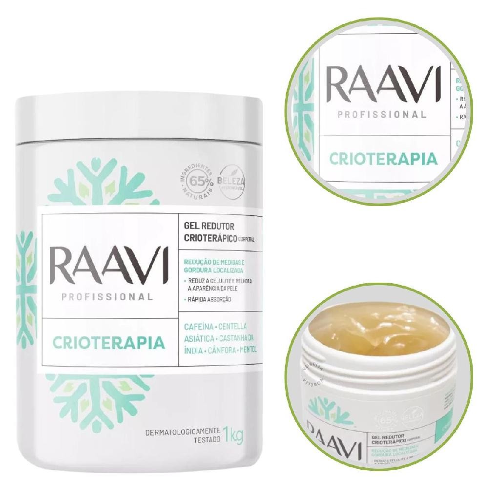 Gel Redutor De Medidas Crioterápico Cafeína Mentol Estética Profissional 1kg Raavi