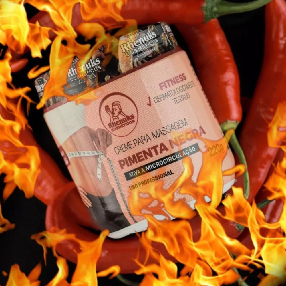 Creme de Massagem com Pimenta Negra 200g cada - Rhenuks . Ajuda a eliminar estrias, celulite, deixando uma sensação de maciez. Reduz medidas e queima gordura localizada . Sua fórmula exclusiva, proporcionando uma sensação de prazer calmante e refrescante. É projetado para ajudar a reduzir as medidas, ativando a microcirculação, que também é usada para estrias e celulite. Uso profissional. Testado dermatologicamente. Modo de uso - Aplicar no local desejado e massageando suavemente até a completa absorção.