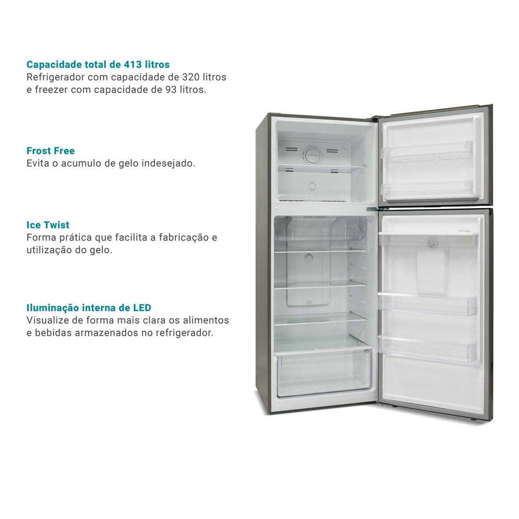 Geladeira 413L Philco Eco Inverter Duplex Inox PRF501TI