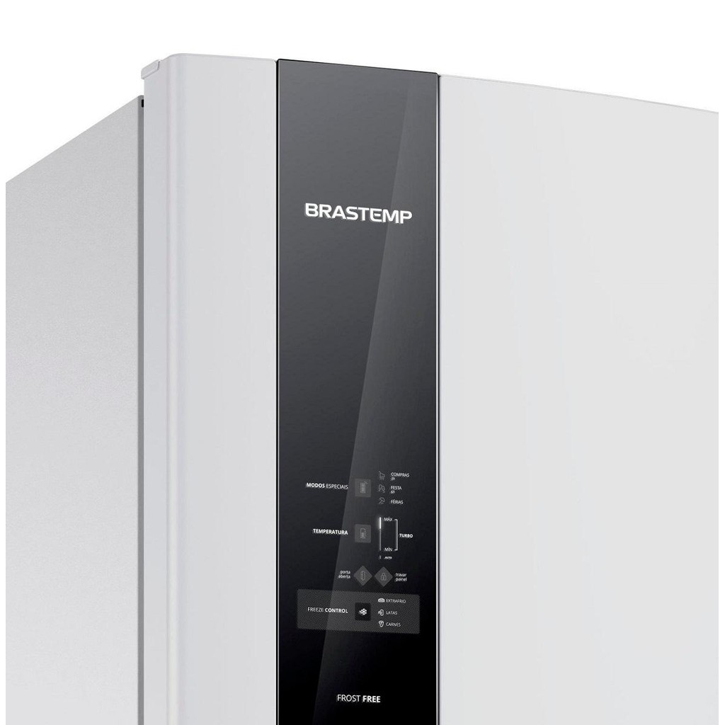 Geladeira Brastemp 400 Litros Frost Free Duplex Branca Com Freezer Control BRM54JBANA - 127V A Geladeira Brastemp Frost Free Duplex 400 litros Branca com Freezer Control possui o exclusivo compartimento Freeze Control, que conserva carnes por até 5 dias sem congelar e deixa bebidas, laticínios na temperatura ideal. Freeze Control Compartimento que permite programar diferentes funções de acordo com a sua necessidade. Conserve carnes por até 5 dias sem congelar e deixe tanto bebidas como frios e laticínios na temperatura ideal. Painel eletrônico Touch Black Funções especiais, controle de temperatura, aviso de porta aberta e mais sofisticação para a sua cozinha. Fresh Zone A tecnologia do gavetão conserva frutas e verduras por mais tempo. A gaveta de legumes mantém a temperatura e a umidade mais adequadas para o armazenamento de frutas e hortaliças, preservando suas características naturais por mais tempo. Espaço Adapt Prateleiras com múltiplas combinações possíveis para armazenar itens de diversos tamanhos na porta de sua geladeira. Produto silencioso Produto até 10% mais silencioso. ESPECIFICAÇÕES TÉCNICAS Capacidade: 400L Marca: Brastemp Cor: Branco Modelo: BRM54JBBNA Voltagem: 127V Classificação Energética: A+ Número de portas: 2 Consumo Aproximado de Energia (kWh): 51,4 kWh Dispenser de água: Não Prateleiras removíveis: Sim Compartimento extra frio: Sim Porta latas: Não Porta ovos: Sim Display: Touch Screen Controle de temperatura: Sim Trava de segurança: Sim Nº de Portas: 2 Portas Painel Eletrônico: Externo DIMENSÕES E PESO Altura: 185 cm Largura: 62 cm Profundidade: 75.5 cm Peso: 66Kg GARANTIA 01 Ano (Sendo 3 meses de garantia legal e mais 9 meses de garantia para defeito de fabricação).