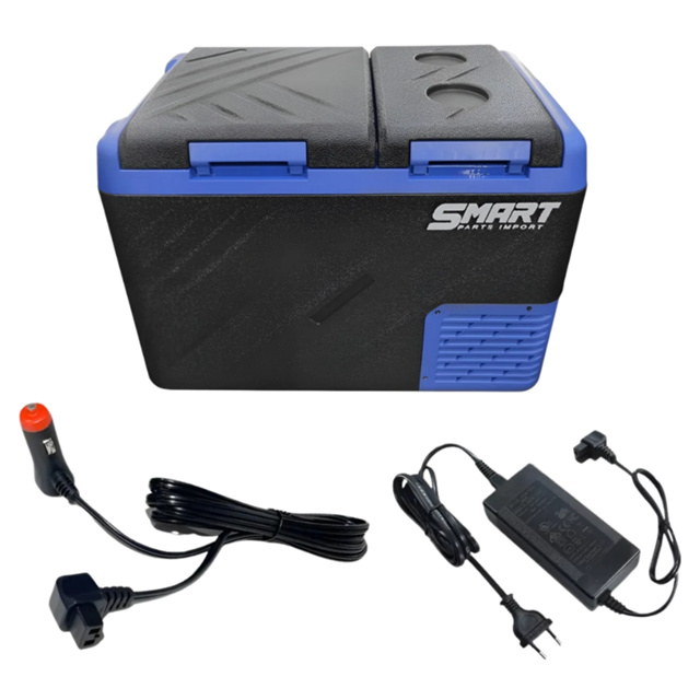 GELADEIRA CAMINHÃO PORTÁTIL 2 PORTAS 45 LITROS BLACK PREMIUM ACOMPANHA NA CAIXA: - 1 GELADEIRA - 1 CABO 12V E 24V - 1 CABO 110V E 220V - 1 FONTE LIGAÇÃO APLICAÇÃO: - CAMINHÃO - BARCO - ESCRITÓRIO - CASA - CHÁCARA - SITIO - FAZENDA - TRATOR COMPATÍVEL: - 12V - 24V - 110V - 220V FUNÇÕES E CARACTERÍSTICAS: - 2 PORTAS SENDO 1 CONGELADOR E A OUTRA REFRIGERADOR - 45 LITROS - GELADEIRA COM CONEXÃO BLUETOOTH VIA APLICATIVO - CONTROLE DE TEMPERATURA AJUSTÁVEL -20ºC ATÉ +20ºC - TAMPA REVERSÍVEL: ABRE PARA AMBOS OS LADOS - ISOLAMENTO EFICIENTE, ECOLÓGIO E SEGURO - PROTEÇÃO CONTRA BATERIA EM 3 ESTÁGIOS: EVITA DESCARREGAMENTO DA BATERIA DO VEÍCULO - MODOS DE OPERAÇÃO: RESFRIAMENTO RÁPIDO OU ECONOMIA DE ENERGIA - PORTA COPOS MEDIDAS EXTERNAS: - LARGURA: 36CM - ALTURA: 44CM - COMPRIMENTO: 60CM MEDIDAS CONGELADOR: - LARGURA: 28CM - ALTURA: 31CM - COMPRIMENTO: 26CM MEDIDAS REFRIGERADOR: - LARGURA: 29CM - ALTURA: 14CM - COMPRIMENTO: 17CM