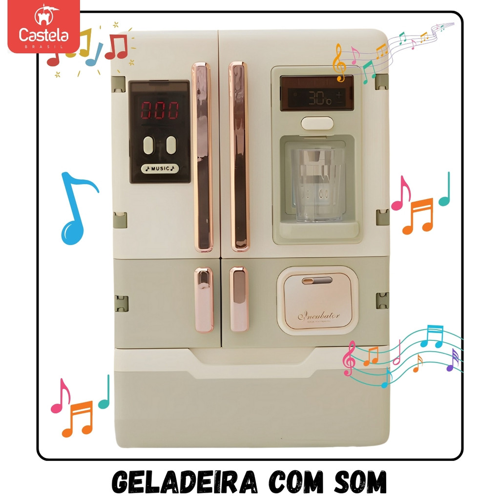 Geladeira Infantil Brinquedo Interativa Som Luz Fumaça Acessórios 28 Peças Castela