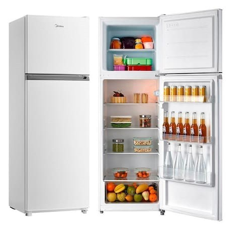 🔹Geladeira Midea Duplex Cycle Defrost 294L - MD-RT411 - A geladeira Duplex Cycle Defrost MD-RT411 Midea 294L Branca veio para proporcionar um amplo espaço para preservar seus alimentos e bebidas, graças aos 69L de freezer e 225L de refrigerador. - Possui prateleiras de vidro, tornando mais fácil a limpeza e organização, além de contar com um gavetão hortifruti, para armazenagem mais prática de frutas, legumes e verduras. - É econômica, com classificação A (modelo 127V) e A+ (modelo 220V) Econômico: Classificação Energética A para modelo 127V e A+ para modelo 220V. - Gavetão hortifruti: armazene frutas, verduras e legumes de forma prática e rápida, facilitando na organização da geladeira. - Prateleiras de vidro: mais fácil de limpar e organizar seus alimentos. Ampla capacidade: freezer de 69L e um total de 294L de espaço para a sua família. - Cycle defrost: é necessário o processo manual de degelo para essa geladeira 🔹Características: - Origem: Importado - Código do Produto: MD-RT411FGF011 / MD-RT411FGF012 - Com Freezer: Sim - Quantidade de prateleiras refrigerador: 4 - Marca: Midea - Quantidade de prateleiras freezer: 1 - Cor: Branco - Tipo: 2 portas - Produto conectado: Não Classificação Energética 127v: A - Inteligência Artificial: Não - Classificação Energética 220v: A+ - Capacidade Total (Bruta): 294 L - Capacidade Freezer: 69 L - Capacidade Refrigerador: 225 L - Painel: Não - Cor interna: Branco - Número de portas: 2 - Prateleiras: Sim - Gaveta para Frutas e Legumes: Sim - Bandeja de ovos: Sim - Kit bandeja de gelo: Sim - Desodorizador: Não - Tipo de degelo: Manual - Agente expansor: Ciclopentano - Gás Refrigerante: R600a - Massa Total de Fluído Refrigerante: 65 - Frequência (Hz): 60 - Tipo de tomada: 10 A - Garantia do Fabricante: 12 meses 🔹Dimensões do Produto - Altura: 176 cm - Largura: 59,5 cm - Profundidade: 55 cm - Peso: 47 Kg