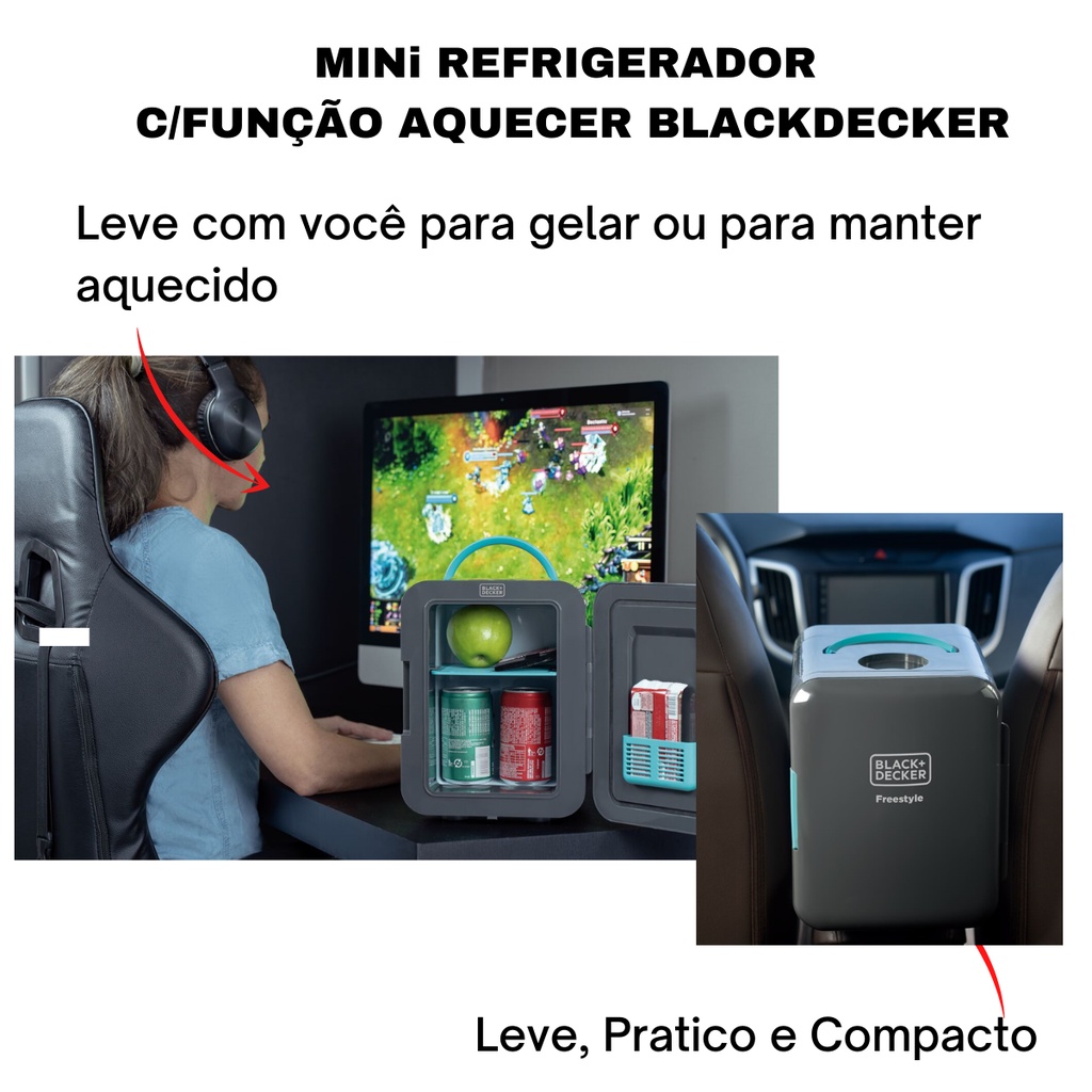 Geladeira Mini Refrigerador Portátil c/ Função Aquecer BlackDecker Bivolt e 12V p/ Carro e Caminhão