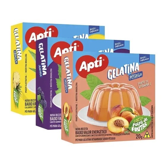 | Gelatina Apti Original – Vários Sabores 20g este produto | R$ 23,91 | 4% | 4.9/5 | 26 |