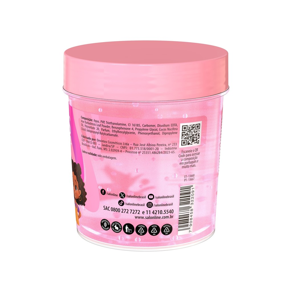 A Gelatina Ativadora de Cachos S.O.S Cachos Kids promove definição intensa e hidratação aos fios, além de auxiliar na finalização de penteados, deixando os cachinhos macios, sem frizz e com brilho. É hipoalergênica e dermatologicamente testada. <>INDICAÇÕES$& Para quais tipos de cabelo? Cabelos ondulados, cacheados e crespos. Qual a indicação? Para cabelos desidratados e com frizz. Pode usar a partir de quantos anos? A partir de 03 anos. <>ATIVOS$& Quais os principais ativos? A Gelatina Ativadora de Cachos S.O.S Cachos Kids possui fórmula enriquecida com óleo de coco e aloe vera que mantém a hidratação, controla o frizz e dá muito brilho. <>MODO DE USO$& Qual a melhor forma de usar? Com os cabelos limpos e úmidos, aplique o creme para pentear mecha a mecha, uniformemente, no comprimento e pontas. Desembarace os fios com um pente de dentes largos e, em seguida, amasse-os iniciando o movimento das pontas até a raiz. Repita o movimento quantas vezes forem necessárias. A aplicação ideal dependerá da quantidade e do comprimento dos fios. Não enxágue. <>CARACTERÍSTICAS$& É produto vegano? A Gelatina Ativadora de Cachos S.O.S Cachos Kids é vegana. É liberado? A Gelatina Ativadora de Cachos S.O.S Cachos Kids não é liberada.