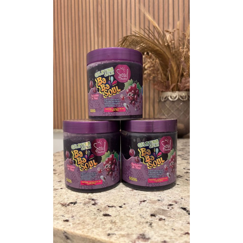 Gelatina Capilar Babasoul 500G a Unidade Soul Cosméticos Fragrâncias: Uva Melancia Morango Tutti Frutti A gelatina capilar oferece hidratação profunda, fortalecimento dos fios e proteção contra danos externos, ela proporciona um toque macio e definição, sem pesar, mantendo os fios leves e cheios de brilho, além de disso vem com cheirinho de chiclete que lembra a infância e trás uma sensação única.