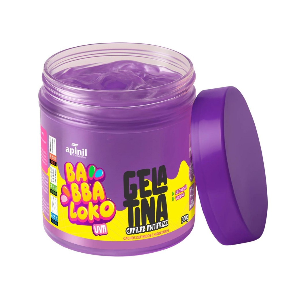 Gelatina Capilar Babbaloko Uva p/ Cabelos Cacheados Super Definição Perfeita & Intensa 500g Apinil