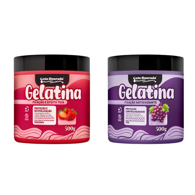 Gelatina Capilar Gota Dourada 500g - Definição e Brilho com Cheirinho de Fruta! (Escolha a sua favorita!) Descrição Completa: Definição dos sonhos, hidratação e um perfume irresistível! Escolha a sua Gelatina Capilar Gota Dourada e transforme seus cabelos! 🍓🍇🍉 Cansada de cachos sem vida e do frizz que acaba com o seu dia? A linha de Gelatinas Capilares da Gota Dourada chegou para ser a sua melhor amiga na hora de finalizar os cabelos! Com uma textura leve que não pesa nos fios, ela garante definição, controle do frizz e um brilho espetacular, além de prolongar seu day after. Ideal para todos os tipos de curvatura, ela pode ser usada pura para um efeito mais definido ou misturada com seu creme de pentear favorito para um resultado mais leve e volumoso. ✨ Por que você vai amar? Máxima Definição: Modela e define cachos e ondas com perfeição. Controle Total do Frizz: Mantém os fios alinhados por muito mais tempo. Brilho Intenso: Deixa seu cabelo com um acabamento luminoso e saudável. Fragrâncias Deliciosas: Um cheirinho de fruta que fica no cabelo o dia todo! Escolha a sua favorita e sinta a diferença: 🍓 Gelatina de Morango: Perfeita para quem ama um aroma doce e marcante! Ajuda a revitalizar os fios, proporcionando uma finalização com toque macio e cheia de vida. 🍇 Gelatina de Uva: Com o poder antioxidante da uva, esta gelatina não só define, mas também ajuda a proteger os fios. Ideal para quem busca cachos definidos e fortalecidos com um perfume delicioso. 🍉 Gelatina de Melancia: Refrescância e leveza definem! A gelatina de melancia é super hidratante, ideal para quem quer definição sem abrir mão do movimento natural e de um aroma que é a cara do verão. 💜 Gelatina de Amora: Para uma nutrição extra! A amora ajuda a fortalecer a fibra capilar enquanto modela. O resultado são cachos firmes, saudáveis e com um perfume suavemente adocicado. ✍️ Como usar: Com os cabelos limpos e úmidos, separe uma pequena quantidade da sua gelatina escolhida. Aplique mecha a mecha, fazendo "fitagem" ou amassando os fios de baixo para cima para ativar a definição. Deixe secar naturalmente ou use um difusor para mais volume. Pronto! Cachos definidos, brilhantes e super cheirosos! Não espere mais para ter a finalização perfeita! Adicione já a sua Gelatina Capilar Gota Dourada ao carrinho e prepare-se para arrasar! Este kit contém: 02 Unidades da Gelatina Capilar 500g Gota Dourada a escolher entre as versões: Morango, Uva, Melancia e Amora