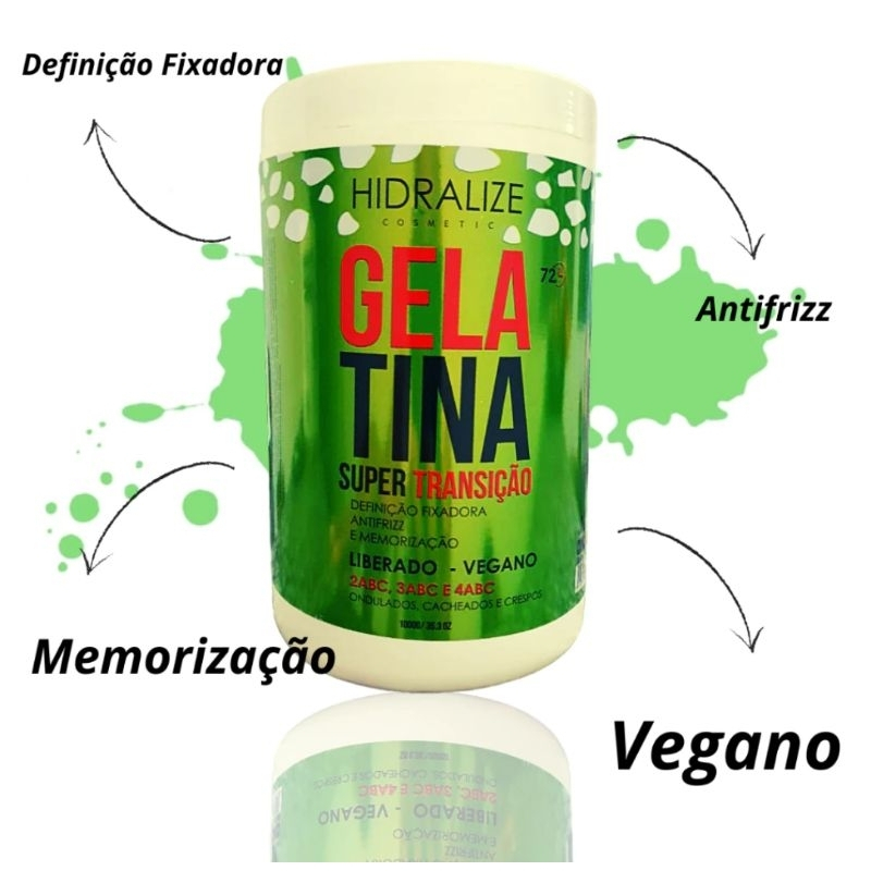 Potencialize seu visual e conquiste resultados profissionais com a Gelatina Capilar Hidralize. Seus cabelos merecem o melhor cuidado, com definição, hidratação e controle incomparáveis, sem comprometer a saúde dos fios. Fórmula vegana e liberada, ideal para todos os tipos de cabelo. Benefícios: > Definição intensa e cachos estruturados > Ação antifrizz e fios alinhados > Fixação duradoura sem enrijecer > Hidratação profunda e maciez > Brilho saudável e vibrante > Textura leve, sem resíduos > Nutrição fortalecedora e anti-quebra Você receberá: Gelatinas Super Definição Hidralize 1kg