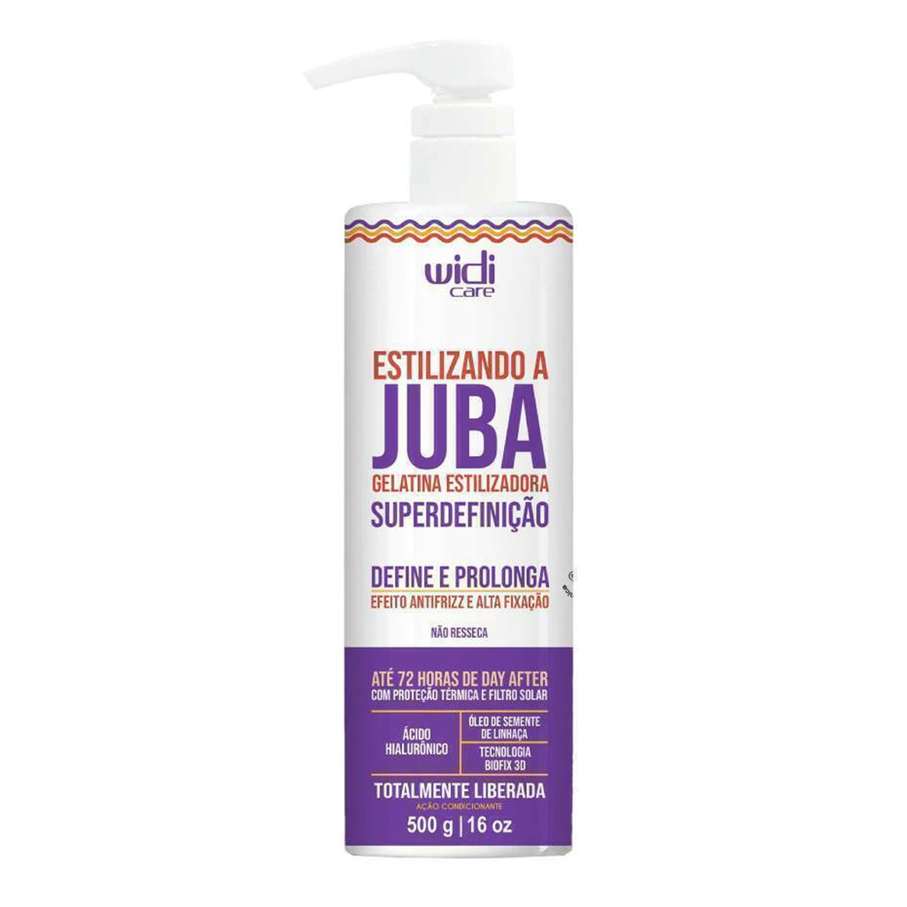 Descrição: A Gelatina Juba Widi Care 300g 500g Estilizando a Juba Gelatina SUPERDEFINIÇÃO chegou para salvar quem ama uma finalização com alta fixação e tratamento dos fios. Sua fórmula enriquecida com Ácido Hialurônico, Óleo de Semente de Linhaça e a inovadora tecnologia Biofix 3D, além de garantir uma definição com efeito duradouro, proporciona cabelos sem frizz e disciplinados, sem aquele aspecto ressecado. Indicada para todos os tipos de curvaturas. Solte a sua JUBA e se joga na super definição! ATIVANDO A JUBA GELATINA FORTALECEDORA é perfeita para quem busca definição, fortalecimento e tratamento na finalização! Sua fórmula enriquecida com Extrato de Guaraná, Óleo de Rosa Mosqueta e a exclusiva tecnologia Biofix 3D, garante definição intensa e duradoura, fortalece os fios, deixando-os 4x mais resistentes, prevenindo a quebra, sem ressecar. Indicada para todas as curvaturas. Modelando a Juba Gelatina Supervolume é perfeita para quem ama volume, leveza e tratamento na finalização! Sua fórmula enriquecida com Extrato de Hibisco, Pantenol e a exclusiva tecnologia Biofix 3D, proporciona definição duradoura, máximo volume e movimento natural, sem ressecar. Garante definição prolongada, volume poderoso, fios tratados e com muito movimento. Indicada para todas as curvaturas. Solte sua JUBA e arrase no supervolumão! Ativando a Juba Gelatina Super-Hidratante é perfeita para quem ama uma finalização com tratamento dos fios. Sua fórmula enriquecida com Óleo de Açaí, Óleo de Moringa e a inovadora tecnologia Biofix 3D, além de garantir uma definição duradoura, proporciona hidratação intensa, brilho radiante e sedosidade aos fios, sem aquele aspecto de ressecado. MODO DE USAR: 1 - Com os cabelos devidamente higienizados e tratados, aplique a gelatina mecha a mecha, de forma uniforme, no comprimento e nas pontas. Desembarace os fios e finalize como desejar. Deixe secar naturalmente ou utilize um difusor. USO EXTERNO. MANTENHA FORA DO ALCANCE DAS CRIANÇAS. Conteúdo da embalagem: 300g ou 500g. #Imagem ilustrativa. Cor do produto poderá variar dependendo da configuração do monitor ou celular.