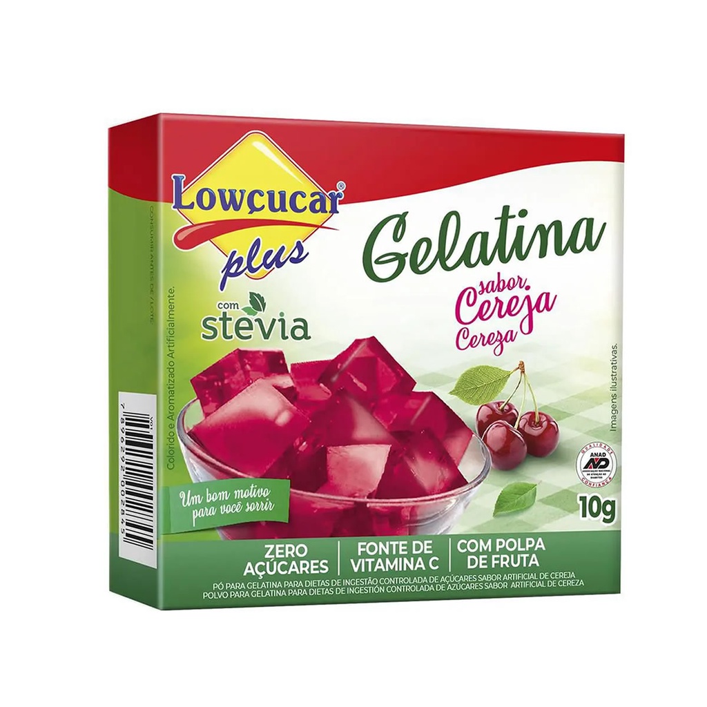 Gelatina Plus com Stevia Sabor Cereja 10g - Lowçucar