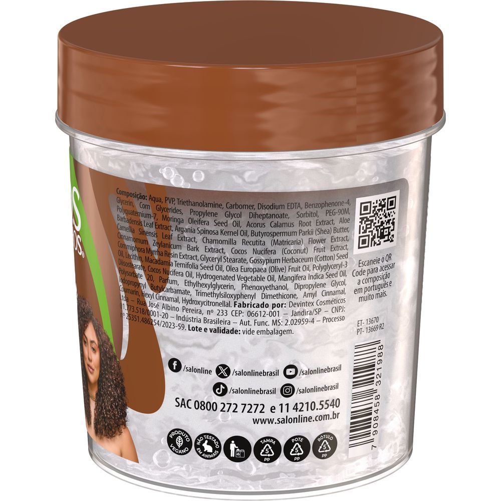 A Gelatina Salon Line SOS Cachos Óleo De Coco 400g proporciona hidratação absoluta, definição intensa, combate o ressecamento, adiciona um banho de brilho e é ideal para cabelos ressecados, com frizz e sem vida das curvaturas 2ABC, 3ABC e 4ABC. Benefícios: - Hidratação intensa; - Antifrizz e Antiquebra; - Brilho e maciez; - Definição intensa. Modo de usar: Com o cabelo limpo e úmido, aplique a Gelatina Salon Line Sos mecha a mecha, uniformemente, do comprimento às pontas. Se desejar mais controle do volume, aplique também próximo à raiz. A quantidade ideal a ser aplicada dependerá da quantidade de cabelo e do comprimento dos fios. Sobre a marca: A Salon Line, uma das maiores fabricantes de cosméticos do Brasil, há mais de 15 anos acompanha a evolução da mulher brasileira. Toda essa vivência fez da empresa uma profunda conhecedora do universo feminino. A empresa está sempre investindo em novas tecnologias e produtos, para oferecer aos clientes, consumidores e profissionais da área o que há de melhor no segmento cosmético mundial. Empresa 100% Nacional, que tem como objetivo especializar-se na beleza das mulheres brasileiras. Sempre desenvolvendo produtos de alta tecnologia, a Salon Line faz do seu slogan a sua realidade: valorizando todas as belezas.