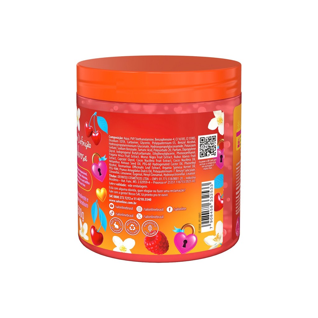A Gelatina Xêrosa Glamour Chic proporciona modelagem impecável, fixação intensa e controle do frizz, garantindo brilho poderoso e definição duradoura. Com perfume floral frutado de alta fixação, entrega maciez envolvente e perfumação duradoura aos fios. <>INDICAÇÕES$& Para quais tipos de cabelo? Para todos os tipos de cabelo. Qual a indicação? Para cabelos sem definição, brilho e com frizz. Pode usar a partir de quantos anos? A partir de 12 anos. <>ATIVOS$& Quais os principais ativos? Possui compostos que trazem brilho, maciez e alta fixação. <>MODO DE USO$& Qual a melhor forma de usar? Com os cabelos limpos e úmidos, aplique a gelatina mecha a mecha, uniformemente, no comprimento e pontas. Desembarace os fios com um pente de dentes largos e, em seguida, amasse-os iniciando o movimento das pontas até a raiz. Repita o movimento quantas vezes forem necessárias. É indicado o uso de até 30g para finalizar, penteados e baby hair. A quantidade pode variar de acordo com o comprimento e o volume do cabelo. Não enxágue. Dica: Para potencializar o perfume, experimente a linha completa. <>CARACTERÍSTICAS$& É produto vegano? A Gelatina Xêrosa Glamour Chic é vegana. É liberado? A Gelatina Xêrosa Glamour Chic não é liberada.