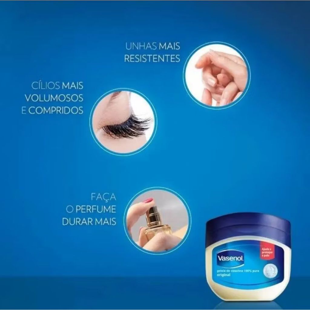 Vasenol Geleia de Vaselina Original 100g • Geleia de vaselina 100% pura, com fórmula triplamente purificada para garantir máxima pureza, segurança e eficácia. • Cria uma barreira protetora que auxilia