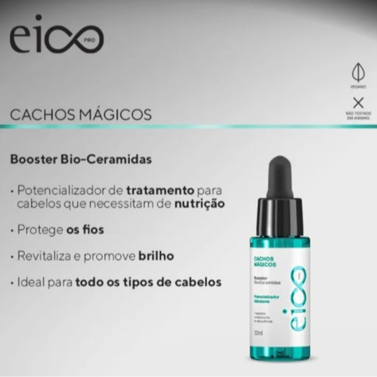 Contém: 1 - Geléia Definição HD Cachos Mágicos 190ml - 72 Horas de Definição 1 - Eico Professional Booster Bio Ceramidas Cachos Mágicos 30ml Para cabelos cacheados, crespos e ondulados Define, modela, evita o frizz, promove o efeito natural dos fios cacheados. Sem Sal, Sem Parabenos, Sem Petrolatos, Sem Corante - Linha Liberada Com Prodefine Complex auxilina na maior definição e ativação dos cachos. Ativos: Óleo de Jojoba + Proteína De Quinoa Depois de lavar, aplique o EICO Geleia de Definição HD Professional Cachos Mágicos no comprimento e nas pontas, com os fios umidos ou secos. Penteie o cabelo e deixe secar naturalmente, ou se preferir, utilize o secador ou difusor. Possui proteção térmica e UV.