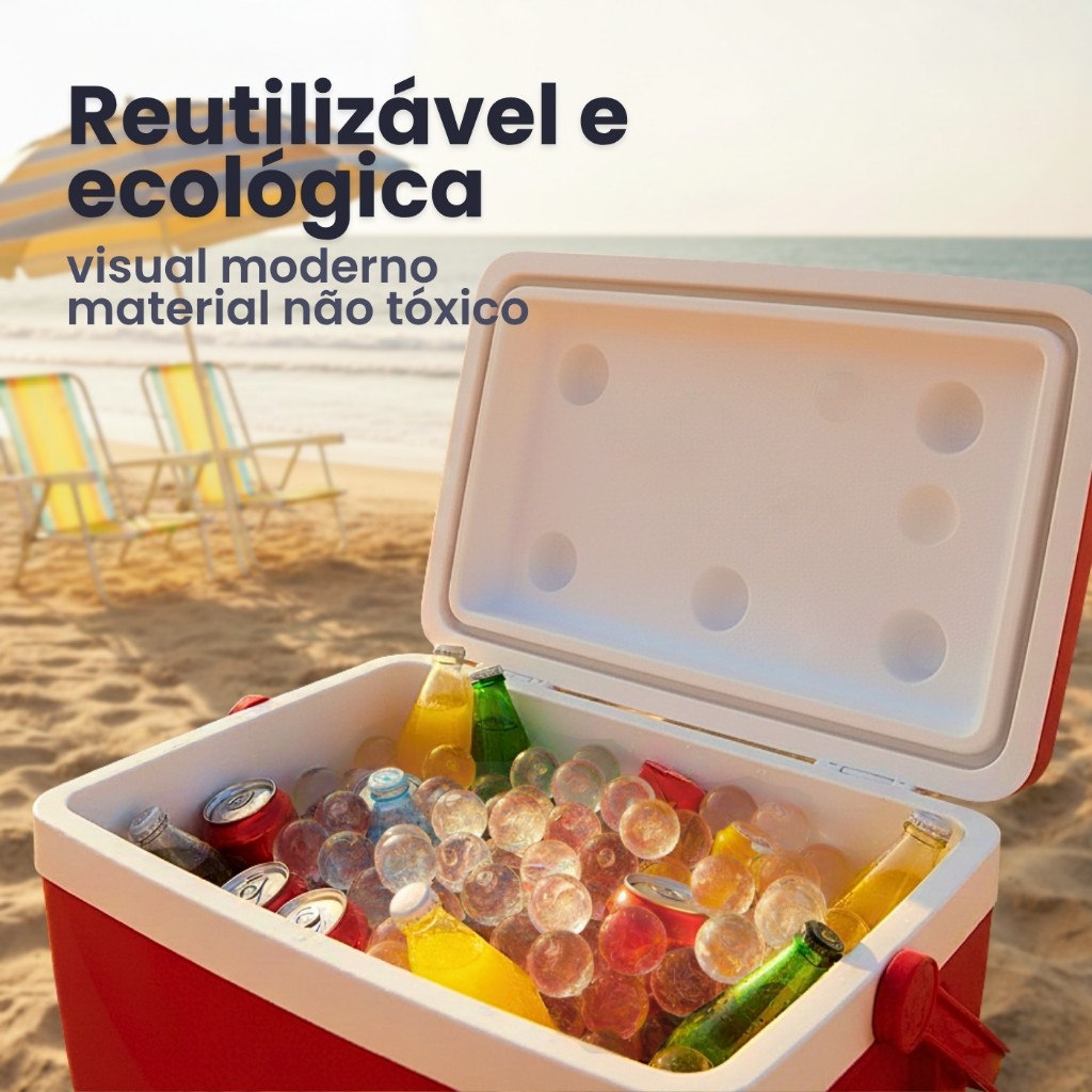 Gelo Reutilizável Bola c/ 12, 24 ou 48un, Não derrete, dilui, sem gosto, cheiro, artificial, lavável