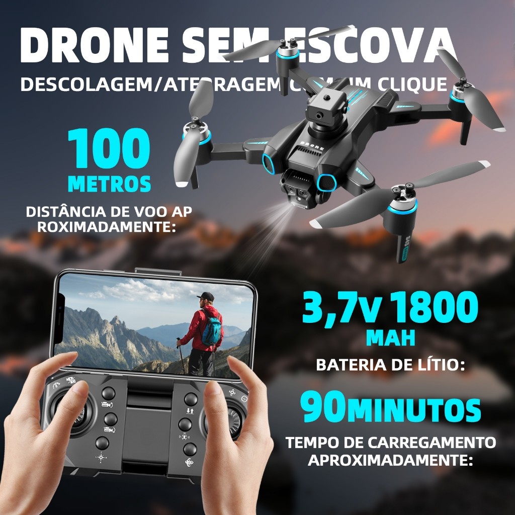 ✅*Peso do Drone: 168,5g *Cor do produto: preto *Método do carregamento: carregamento do cabo USB 🎛️*Distância do controle remoto: 100 metros *Sinal De Transmissão: WiFi *Ângulo Lens: Ajuste motorizado 90 ° *Modelo do motor: 1503 motor brushless *Número de canais: giroscópio de 6 eixos de 4 canais ✨✨Função descrição: 1. A lente frontal é colocada com WIFI de alta definição de grande angular 6K, a lente de alta definição inferior com fluxo óptico pode alternar o ângulo da câmera, o servo pan tilt é projetado para aumentar a estabilidade, e o anti shake eletrônico EIS é adicionado para tornar a linha da foto mais clara 2. A função da fixação da altura tem a altura que mantém a função do modo, e o posicionamento ótico do fluxo e a função do fixo-ponto têm o voo estável. 🔋3. Bateria ultra longa do íon da resistência 3.7V 1800mAh Li, que pode durar aproximadamente 23 minutos ✨✨O que você precisa saber sobre este produto: -Frequência de funcionamento do Wi-Fi: 2.4 GHz -Versão: HD 1080. -Tipo de drone: aéreo. -Atinge uma velocidade máxima de 9m/s. -Câmera dupla embutida. 🔋-Inclui 2 baterias. -Com giro 360. ✅-Vem com modo de retenção de altitude para voos estáveis. ✅-Possui função de retorno automático. ✅-Tem modo sem cabeça para voar sem a necessidade de ajustar a posição. ✅-É dobrável. ✅-Inclui controle remoto. 📦-Acessório incluído: 1 cabo USB. -A duração da bateria depende do uso que se dê ao produto. Garantia do vendedor: 3 meses