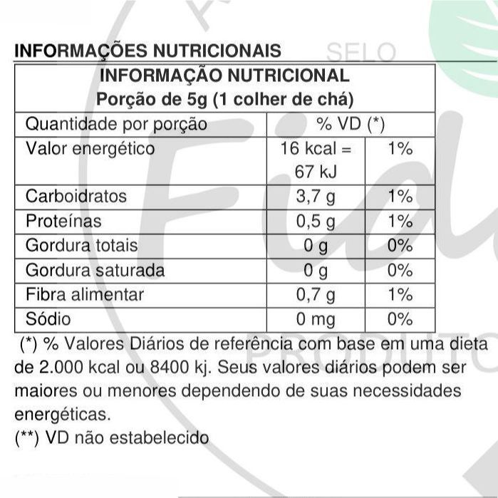 Prezamos por Produtos de Qualidade Produtos com Procedência e Nota Fiscal Autoridade em linha de Produtos Naturais Envio Seguro e Precisamente Embalados Pergunta Frequente; Qual a validade? VOCÊ IRÁ ENCONTRAR A VALIDADE NA ETIQUETA DA EMBALAGEM, TRABALHAMOS APENAS COM PRODUTOS FRESCOS, DESSA FORMA VOCÊ RECEBERÁ O PRODUTO COM UMA VALIDADE EXTENSA. DEPENDENDO DO PRODUTO, DE 1 ATÉ 2 ANOS. **** ATENÇÃO ATRAVÉS DO CHAT APÓS A COMPRA ENVIAMOS O LAUDO TÉCNICO DE PUREZA DO PRODUTO *** Produto dispensado de registro conforme a RDC nº 240, 26 de julho de 2018 ADVERTÊNCIAS Este produto NÃO é um Medicamento. Mantenha fora do alcance de crianças Não consumir o produto se o lacre de proteção estiver violado. ARMAZENAGEM: Conservar ao abrigo da luz, calor e umidade. Conserve o produto bem fechado, em temperaturas entre 15c e 30c e umidade relativa do ar entre 35% e 65%