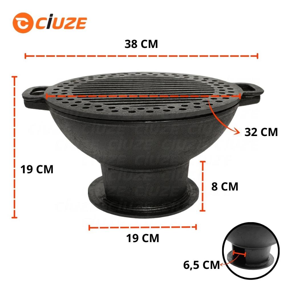 Gengiskan Ferro Redonda 5 - Chapa Grelha Gengiskan redonda em ferro fundido, acompanha chapa grelha a base e raloUma ótima opção para seu churrasco material ferro fundido super resistenteA gengiskan usa muito pouco carvão, isto torna seu churrasco muito mais econômico. Ela tem o tamanho compacto, proporcionando ao seu churrasco mais conforto, economia e rapidezDiâmetro aprox. de 32cm