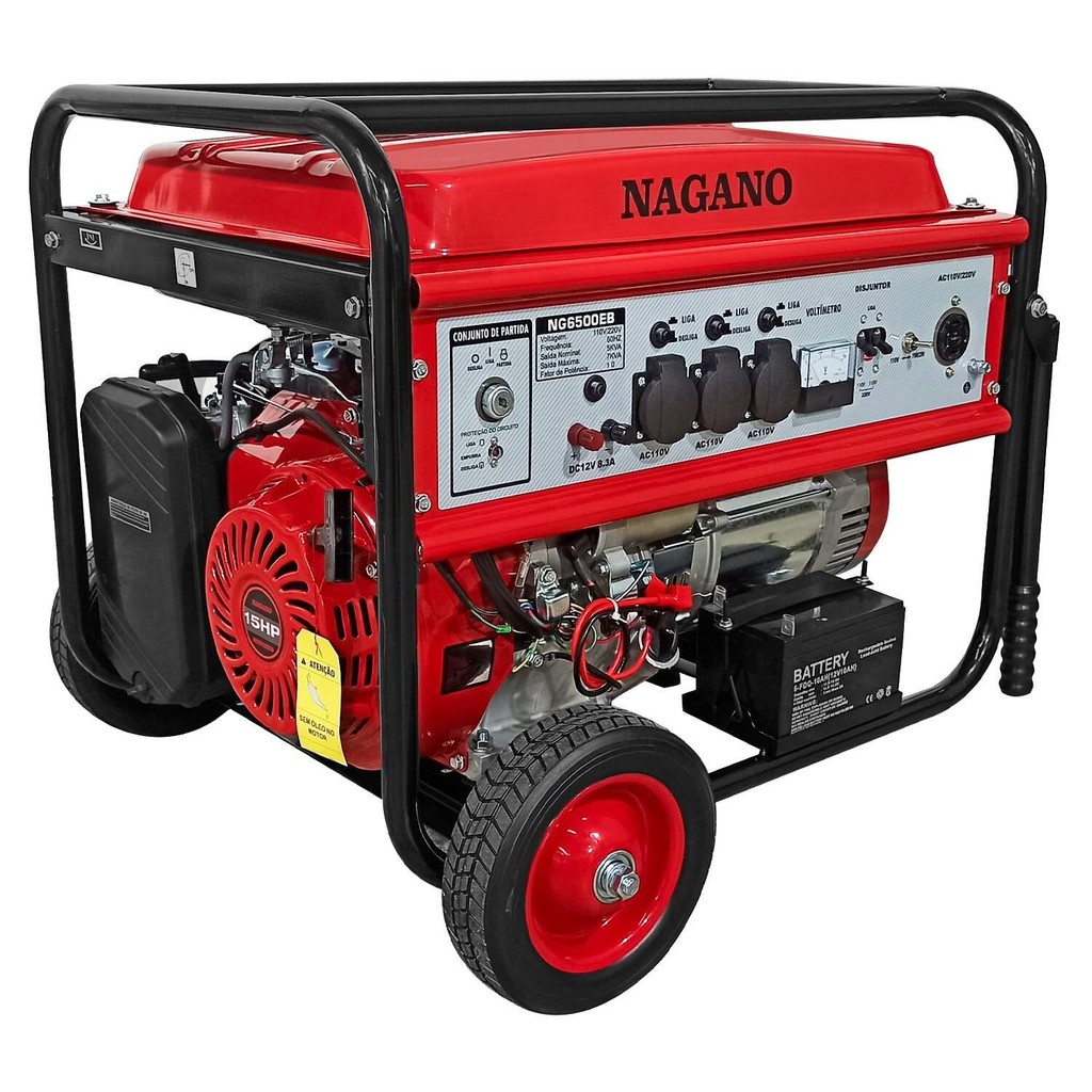 Gerador de Energia a Gasolina 7kva Monofásico 110v Partida Elétrica 15hp - NG6500EB Nunca mais fique no escuro! O Gerador de Energia a Gasolina Nagano NG6500EB é a escolha ideal para quem busca potência, confiabilidade e praticidade. Desenvolvido para manter seu lar, comércio ou indústria funcionando sem interrupções, ele garante energia estável mesmo nos momentos mais críticos. Potência e Confiabilidade Com 7KVA de potência máxima e motor de 15hp, o Nagano NG6500EB fornece energia suficiente para sustentar desde eletrodomésticos e equipamentos de escritório até ferramentas e máquinas industriais. Partida Elétrica – Conforto ao seu Alcance Nada de esforço desnecessário: basta apertar um botão e o gerador entra em ação, pronto para manter seu dia rodando normalmente. Versatilidade para Diversas Aplicações Seu sistema monofásico 110/220V com regulador de voltagem AVR garante proteção contra variações de energia e adaptação a diferentes usos. Eficiência e Economia Projetado para baixo consumo de combustível e funcionamento contínuo por até 8 horas, é a solução inteligente para quem busca performance e menor impacto ambiental. Principais Benefícios Energia garantida: Fim das interrupções em