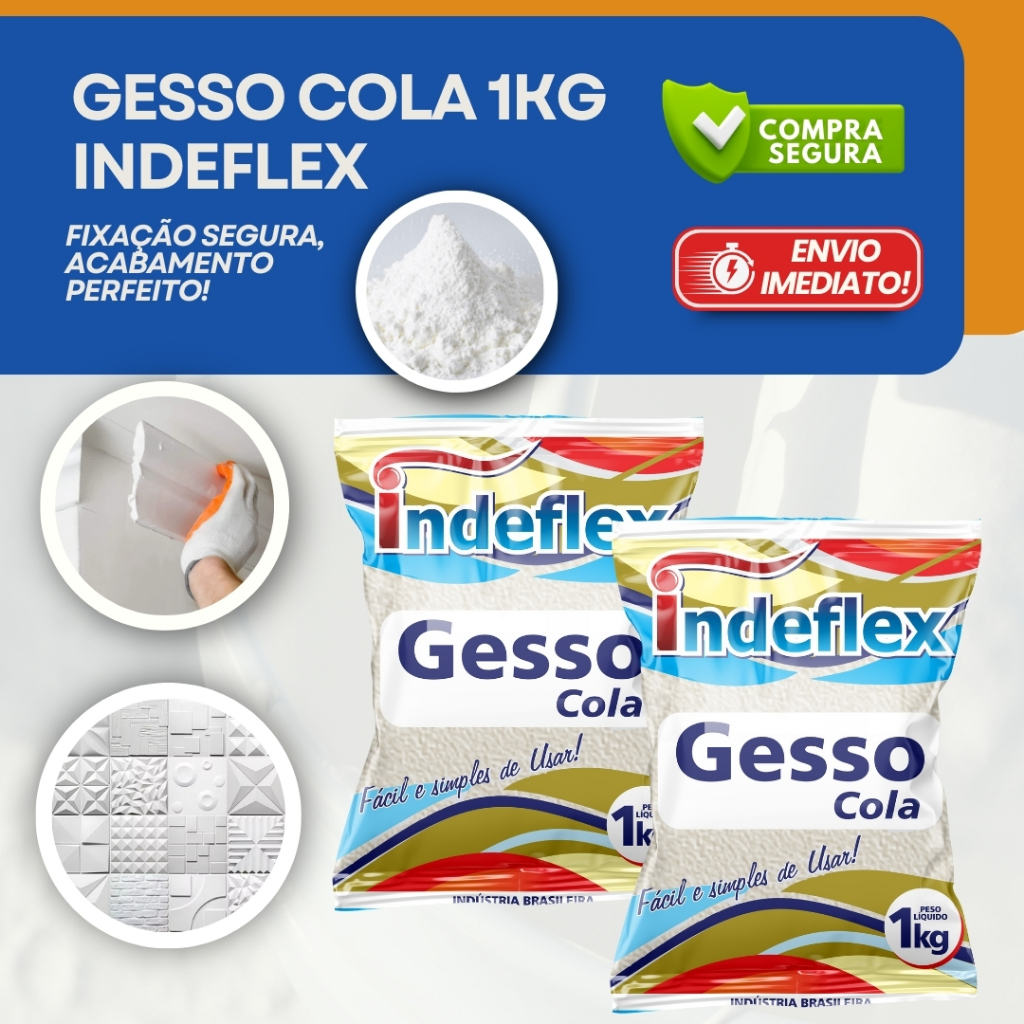 Gesso Cola Branco para Drywall, Molduras e Reparos – 1kg – Alta Aderência e Secagem Rápida Indeflex