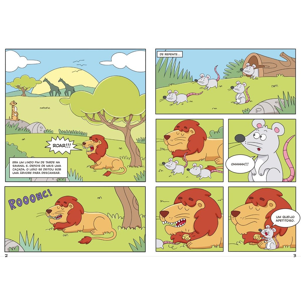Depois de mais um dia de caça, um feroz leão decidiu tirar uma soneca. Porém, seu sono foi interrompido por um atrapalhado e corajoso ratinho. E agora? O que será que o rei da selva fará com o pequeno animal? Leia este fantástico livro em quadrinhos e descubra! 13x20cm 16 Páginas