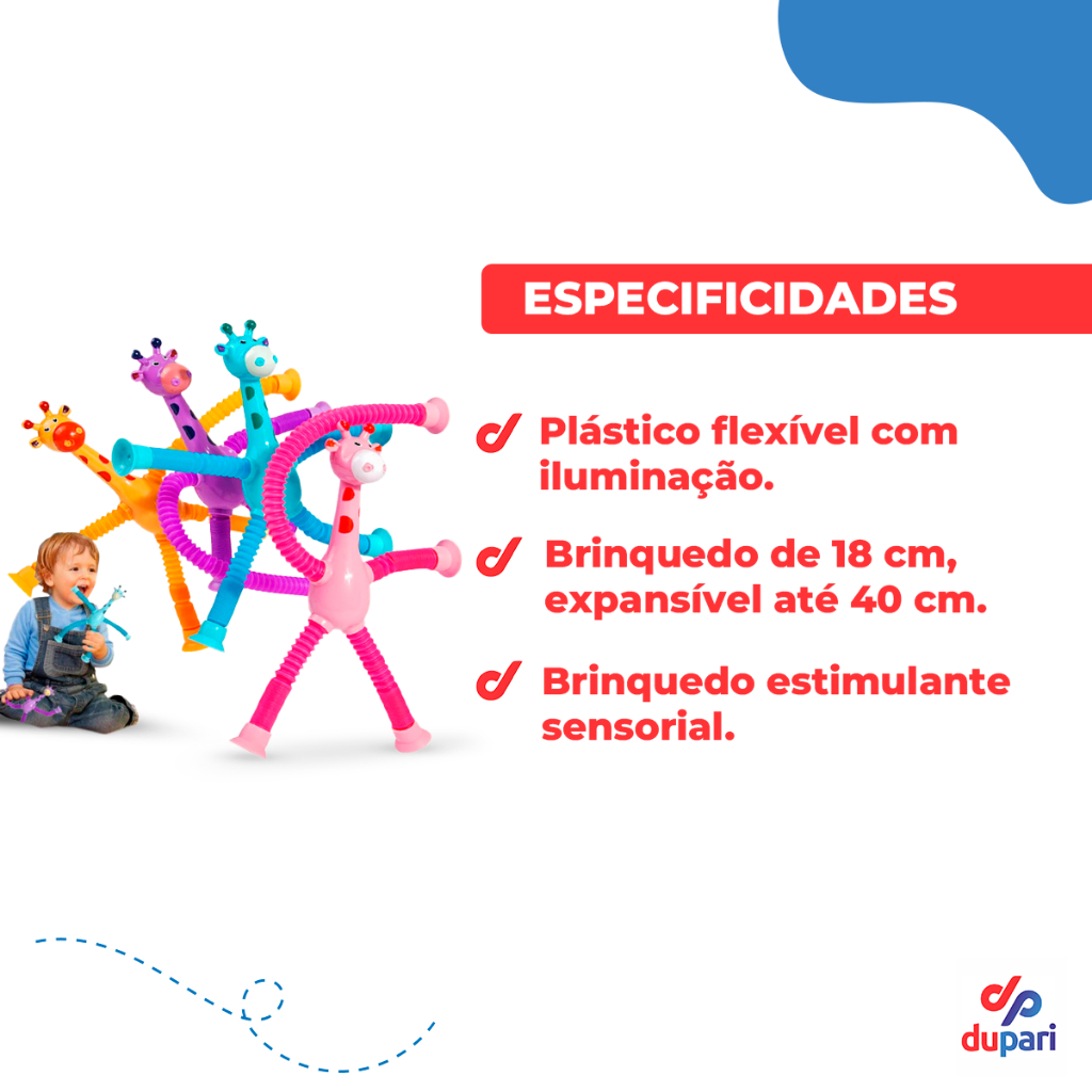 Girafa Pop Tubo Led Com Ventosa E Luz Brinquedo De Criança Puxa Estica Até 40cm