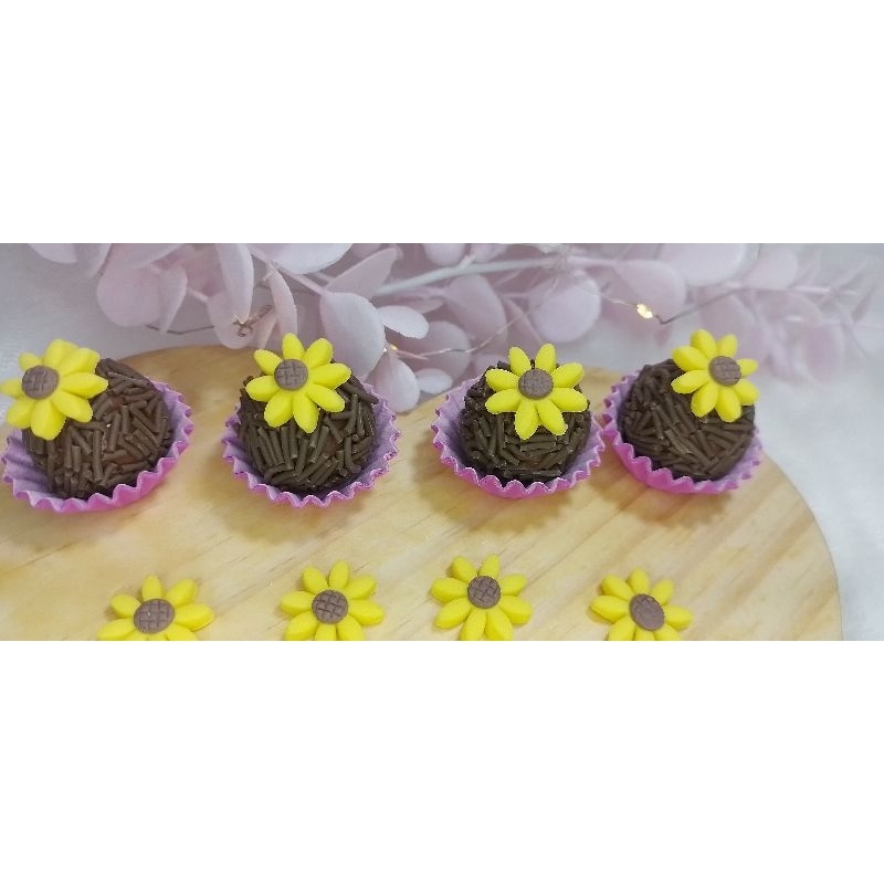 Girassol de açúcar aplique para donuts e brigadeiros 50 unidades