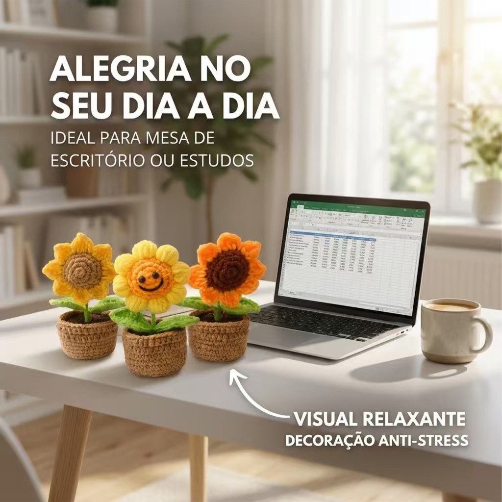 Girassol de Crochê Artesanal 14cm com Vaso Presente