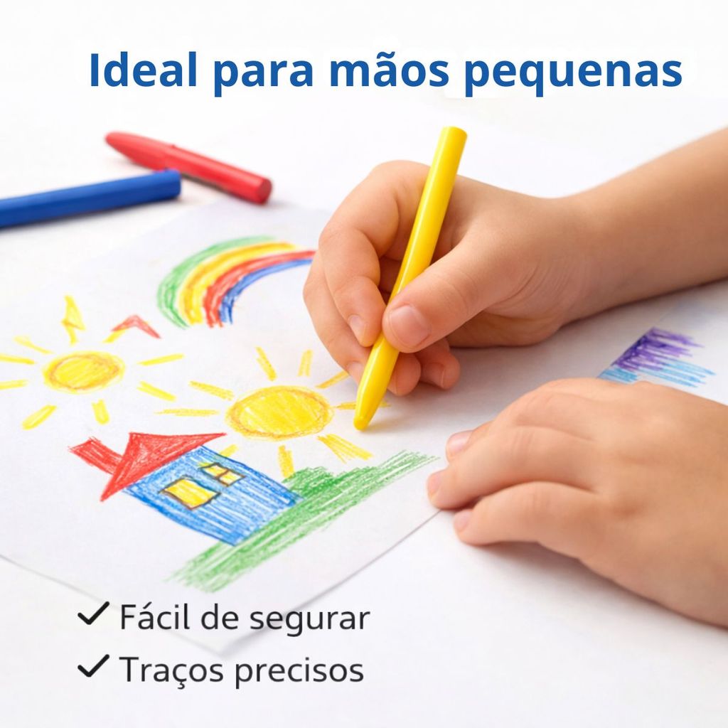 Giz de Cera Infantil 12 Cores Seguro, Escolar e Divertido Desperte a criatividade das crianças com o Giz de Cera Infantil 12 Cores, ideal para atividades escolares e momentos de diversão em casa. Desenvolvido especialmente para mãos pequenas, oferece traços macios, cores intensas e excelente cobertura no papel. Principais Benefícios 12 cores vibrantes para desenhos mais vivos e criativos Traço macio com ótima cobertura Formato fino, fácil de segurar por crianças Traços precisos, ideal para coordenação motora Não tóxico, seguro para uso infantil Uso escolar e educativo Ideal para: Escolas e atividades pedagógicas Desenhos, pinturas e atividades recreativas Crianças em fase de desenvolvimento motor Especificações do Produto Tipo: Giz de cera Quantidade de cores: 12 Indicação: Infantil / Escolar Material: Cera Segurança: Produto não tóxico Produto perfeito para estimular a criatividade, imaginação e aprendizado das crianças com total segurança. Aproveite e garanta agora para atividades escolares ou diversão em casa!