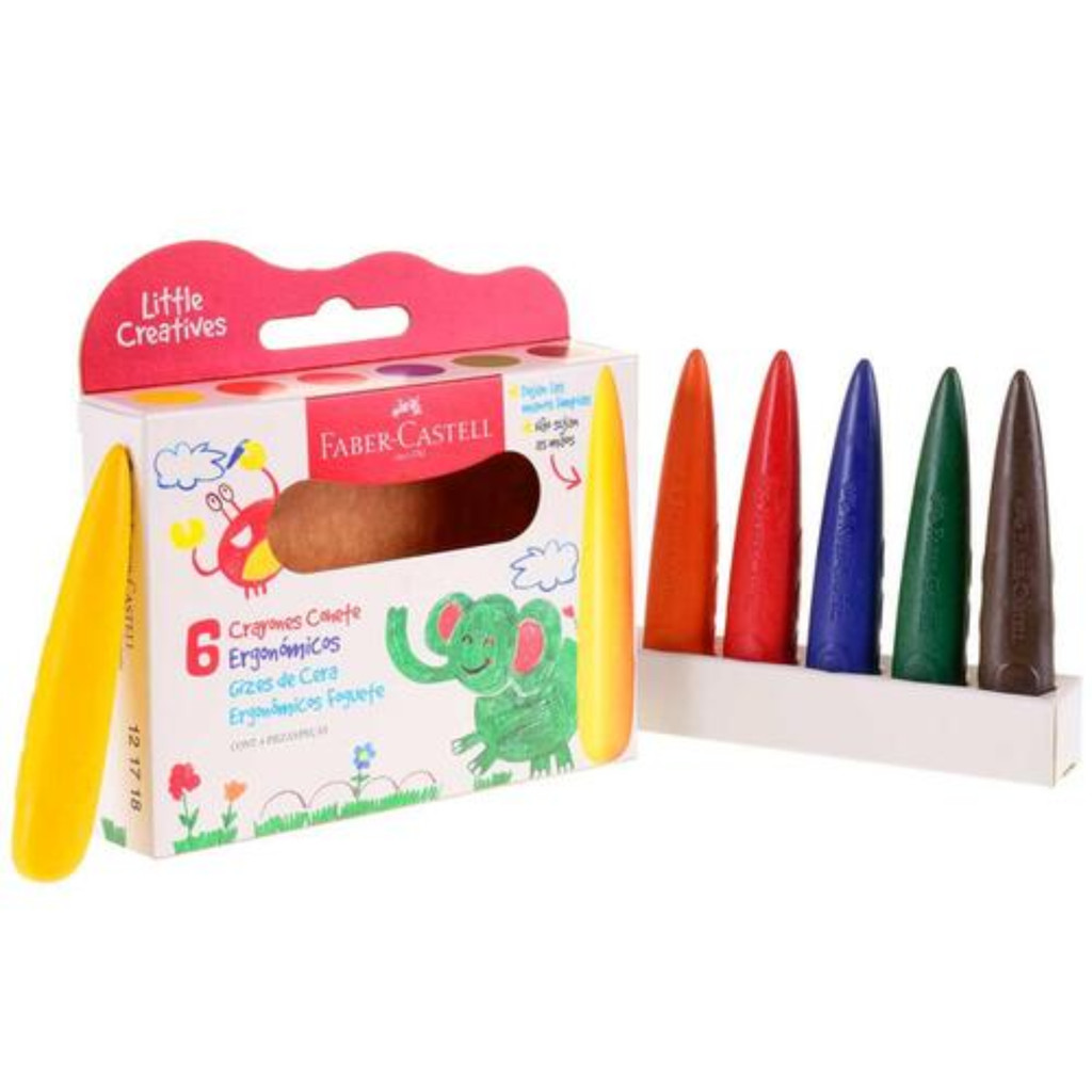**Produto certificado de acordo com as portarias INMETRO Nº:* Registro 000650/2023 **Especificações Técnicas:** * Marca: Faber-Castell * Referência: 121718 * Código: 488088 * Características do Produto: Giz de cera em formato de foguete. Resistente à quebras. * Embalagem: 01 Estojo com 06 unidades **Descrição:** A linha Little Creatives da Faber-Castell é um convite para as mãos pequenas mergulharem no maravilhoso mundo da imaginação e da arte. E entre suas estrelas, o Giz de Cera Foguete se destaca como uma ferramenta essencial, projetada com um formato especial para garantir uma experiência de pintura confortável e divertida para as crianças. Para pequenos artistas com grandes sonhos, o Giz de Cera Foguete da linha Little Creatives da Faber-Castell é a escolha perfeita. Com sua combinação de atributos como, resistência a quebras, cores vibrantes e formato especial para mãos pequenas, este giz de cera não só estimula a criatividade das crianças, mas também proporciona uma experiência de pintura suave, segura e divertida. Seja em casa, na escola ou em qualquer lugar, este giz de cera infantil é uma ferramenta essencial para transformar ideias em obras de arte coloridas e cheias de vida.