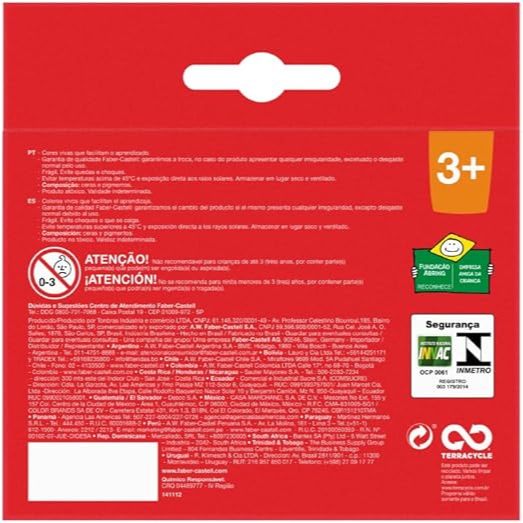 Giz de Cera 12 Cores Gizão Faber Castell As crianças exercitando a criatividade Características do Produto Giz de cera formato jumbo auxilia no aprendizado e desenvolvimento da coordenação motora. Cores vivas e vibrantes Fórmula resistente à queda. Especificações Formato jumbo Cores vivas que facilitam o aprendizado. Fórmula resistente à queda. Estojo exclusivo que garante maior proteção Embalagem Contém 12 cores JUMBO Valor Unitário ( Por Unidade ). Produto Conforme Foto.