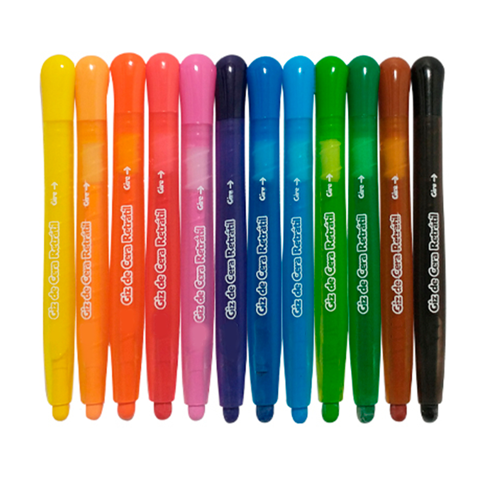 Giz de Cera Retrátil Atóxico com 12 Cores Vivas