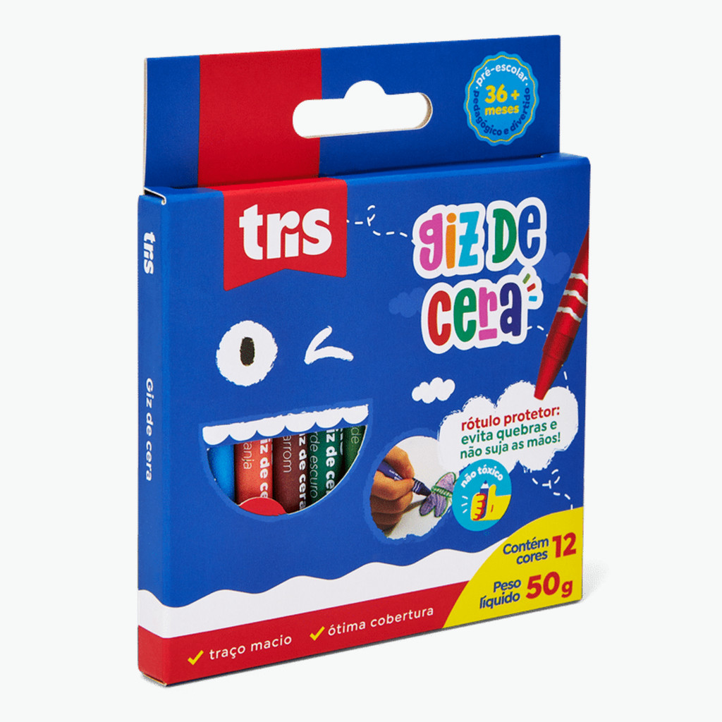 Giz de Cera TRIS – Estojo com 12 Cores Vibrantes