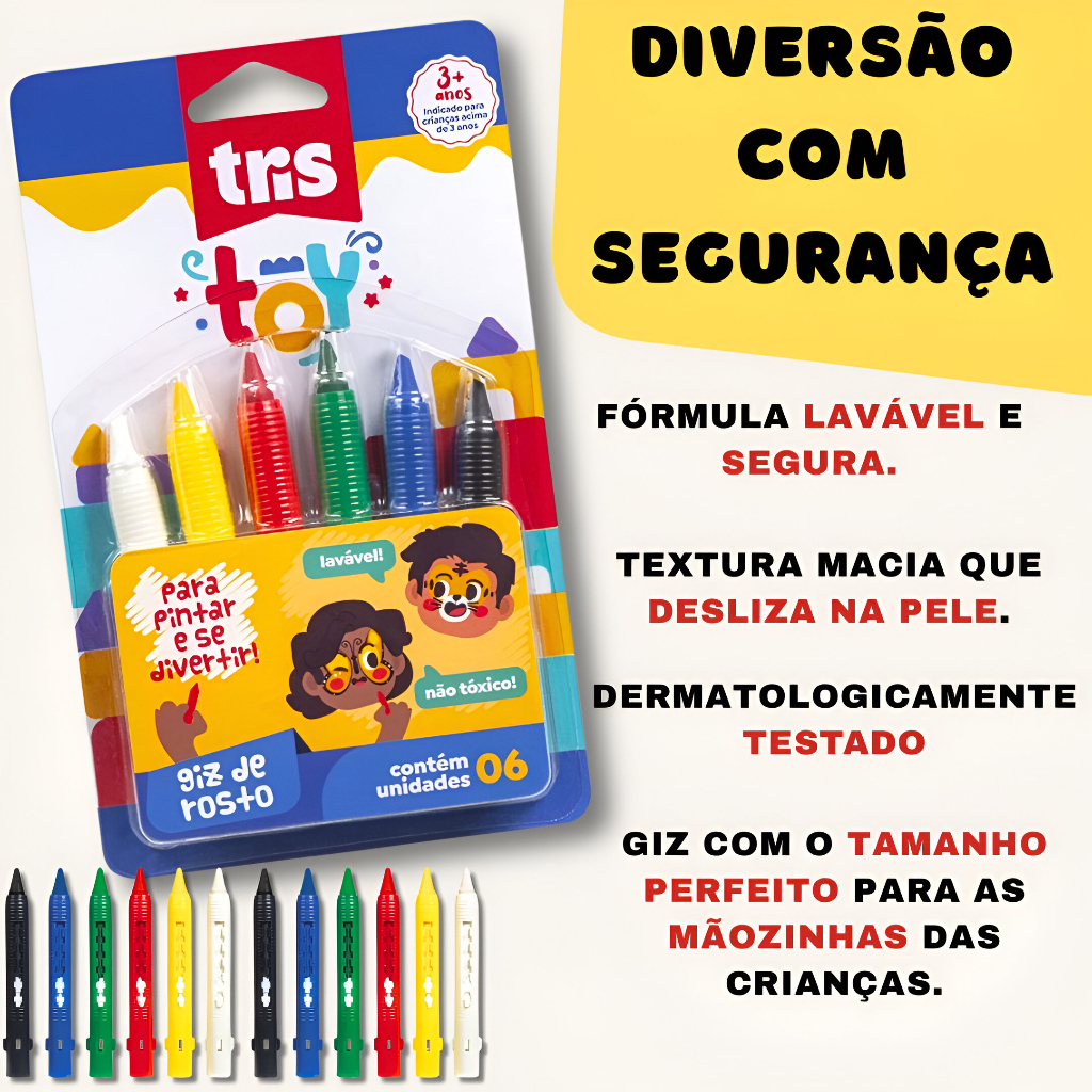 Giz de Rosto Tris – 6 Cores Vibrantes para Crianças a Partir de 2 Anos