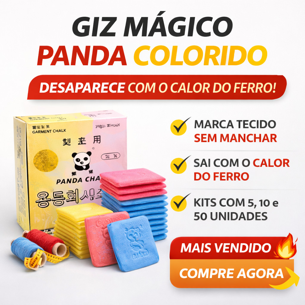 SEJAM BEM VINDOS TEDMAC ENVIO IMEDIATO Giz Panda Marcador de Tecido para Costura O Giz Panda para Tecido é ideal para fazer marcações precisas em tecidos durante trabalhos de costura, modelagem, alfaiataria e patchwork. Muito utilizado por costureiras, ateliês, confecções e profissionais da costura, facilita a marcação para corte e ajustes no tecido. Possui traço visível e fácil remoção, garantindo praticidade no dia a dia. 📦 Kits disponíveis Escolha a variação desejada antes de finalizar a compra: • Kit 05 unidades • Kit 10 unidades • Kit 15 unidades ⭐ Benefícios do produto ✔ Ideal para marcar tecido para corte e costura ✔ Traço preciso e fácil de visualizar ✔ Fácil remoção do tecido ✔ Muito utilizado em costura profissional e doméstica ✔ Perfeito para alfaiataria, modelagem e patchwork 📌 Indicação de uso • Costura doméstica • Costura industrial • Alfaiataria • Patchwork • Modelagem de roupas • Marcação para corte de tecidos 📦 Produto enviado com embalagem segura 🚚 Envio rápido pela Shopee