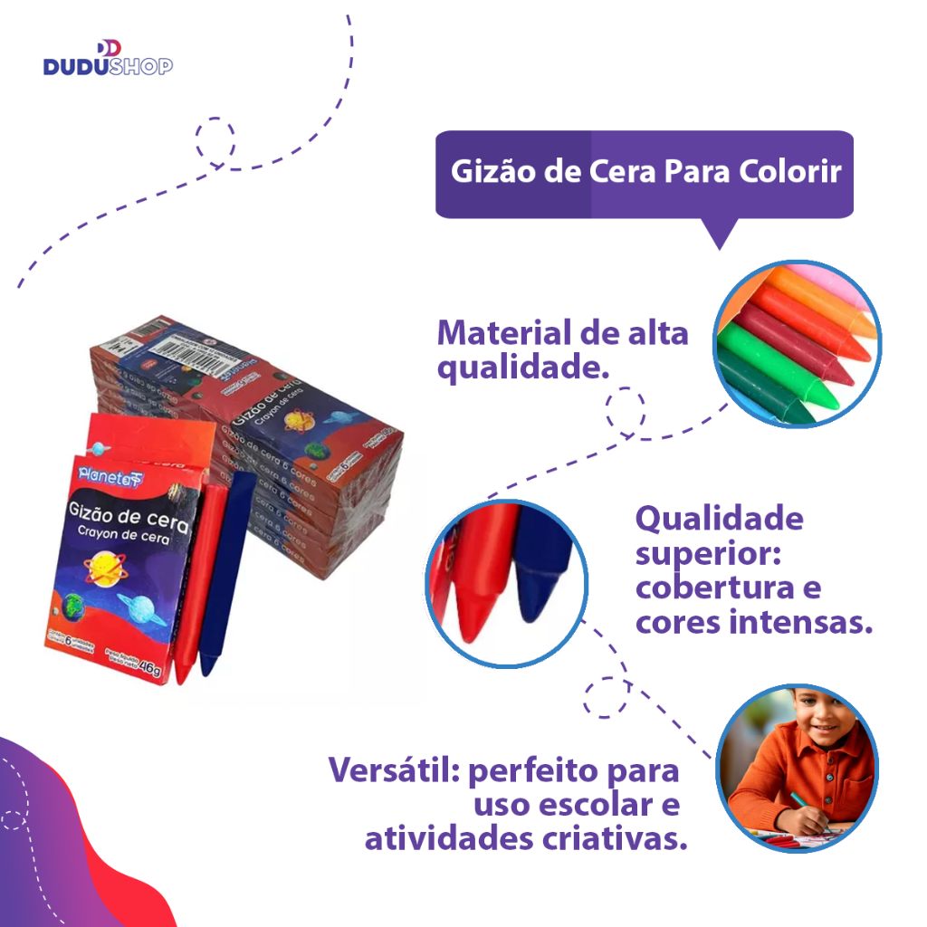 GIZÃO DE CERA PARA COLORIR 12 UNIDADES Pct. c/ 12 Caixas com 12 unidades Fórmula que proporciona maciez e facilidade na transferência de cor para o papel.Por ser mais espesso é resistente à quebra.Solta pouco farelo.Possui cores intensas e vibrantes.Produto não tóxico. ÓTIMO CUSTO BENEFICIO , IDEAL PARA REVENDA.