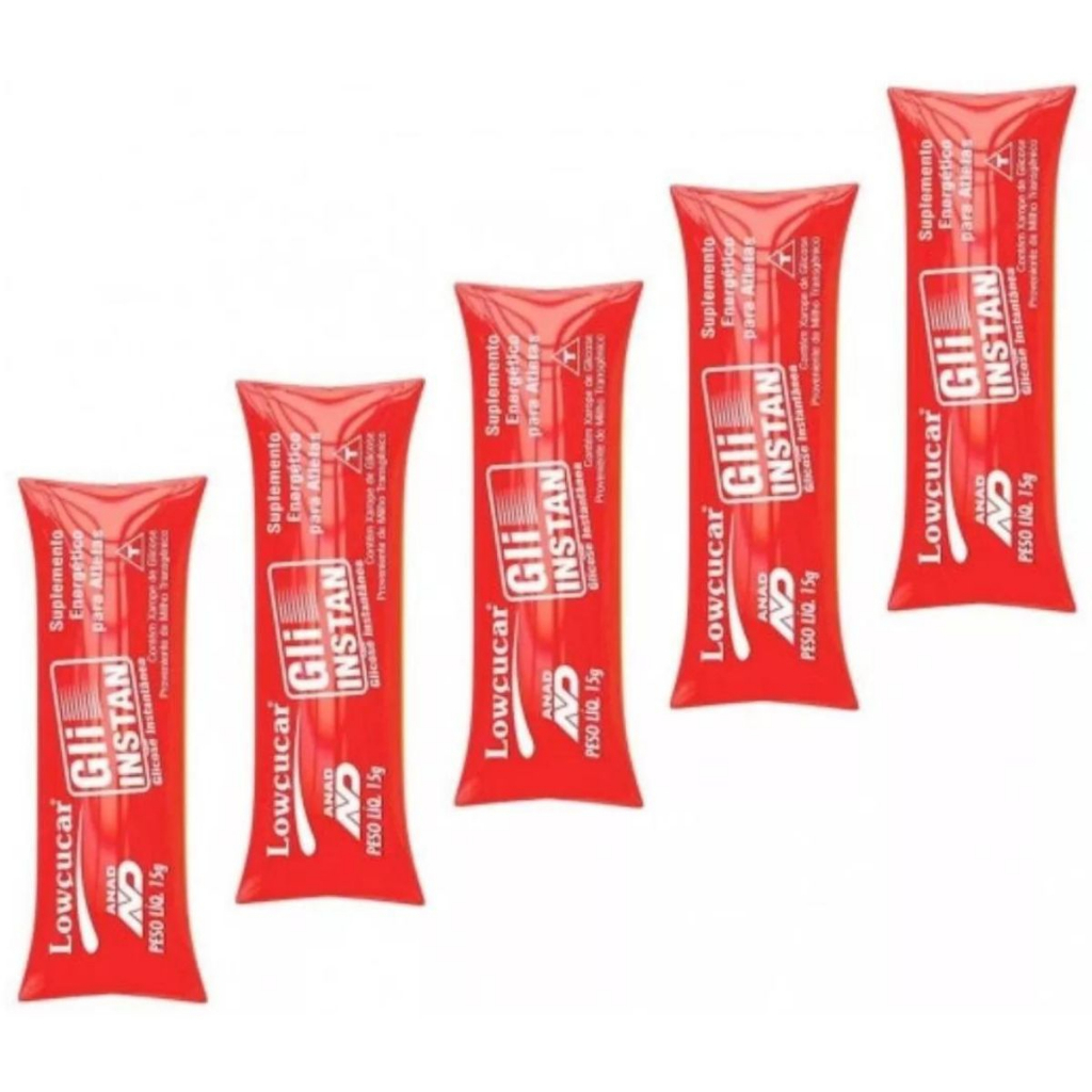 Gli-Instan Lowçucar Bala Líquida com Glicose Instantânea Cada Pote Possui 10 Unidades com 15g Cada O Gli-Instan, age de forma rápida e eficaz. Indicada para casos de hipoglicemia comprovada em diabetes, ou causada por má alimentação, prática de exercícios sem controle alimentar ou ingestão de bebida alcoólica. Aprovado pela ANAD, indicado para todos inclusive os diabéticos. SUPLEMENTO ENERGÉTICO EM SACHÊ (para atletas). Pode ser consumido nas seguintes situações: 1. Na prática de esporte, após um longo tempo sem se alimentar, o nível de glicose do organismo pode ser reduzido de forma a comprometer o desenvolvimento; 2. Em casos de hipoglicemia causada por um descontrole na alimentação do diabético com a aplicação de quantidade maior de insulina que a necessária; 3. Em casos de hipoglicemia causada após ingestão de bebida alcoólica acima do normal. Ingredientes: Açúcar Líquido Invertido; Xarope de Glicose; Acidulante Ácido Cítrico; Aroma Idêntico ao Natural de Guaraná; Corante Idêntico ao Natural de Caramelo e Artificiais Tartrazina, Bordeaux e Azul Brilhante FCF; Conservante Sorbato de Potássio. Não contém glúten. Isento de lactose.