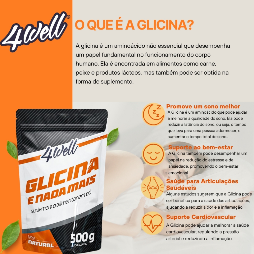 Glicina Em Pó 100% Pura 4well - Melhora a qualidade do sono