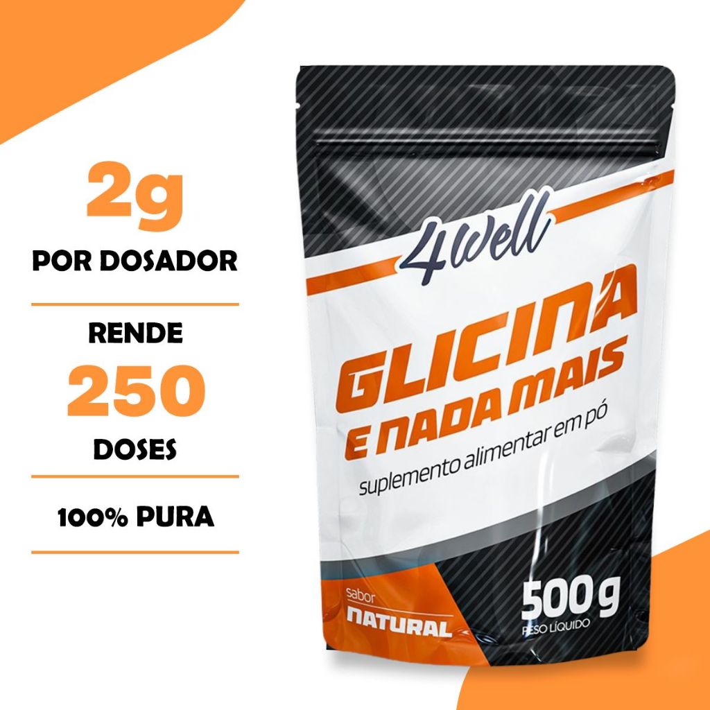 Glicina em pó 500g - 100% Pura - Suplemento Aminoácido - 4well