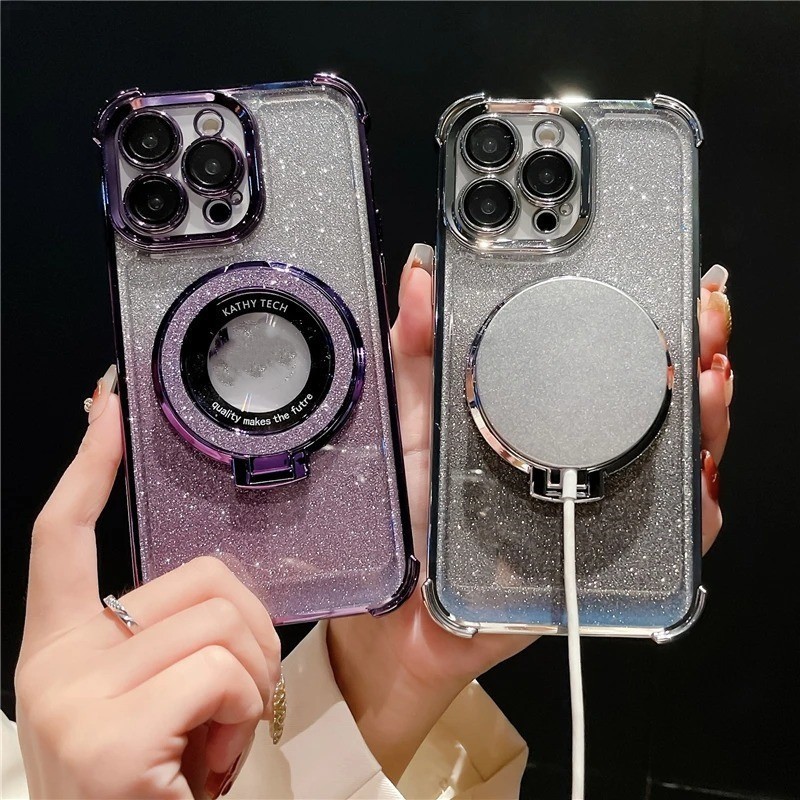 Glitter De Luxo Com Capa De Suporte Magnético Compatível Para iPhone 15 14 13 12 11 Pro Max À Prova De Choque