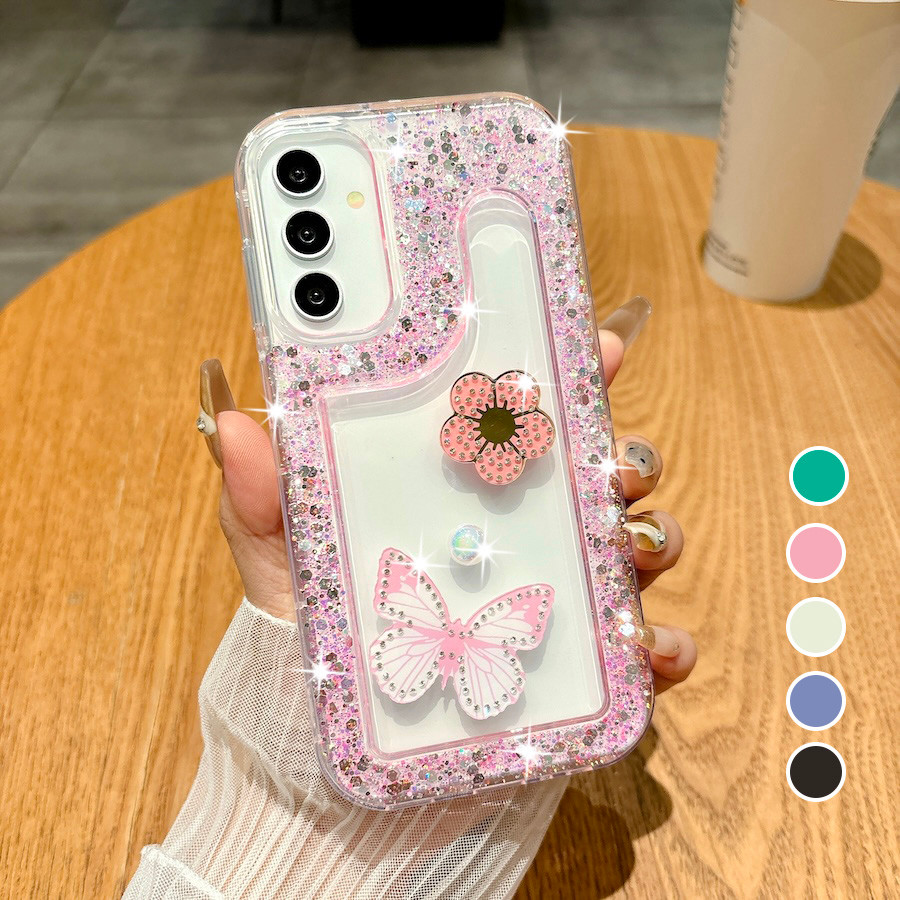 Glitter Flor Borboleta Claro Macio Bling Caso Para Samsung A07 A17 A06 A16 A26 A36 A56 A14 A24 A34 A54 A05s A15 A35 A55
