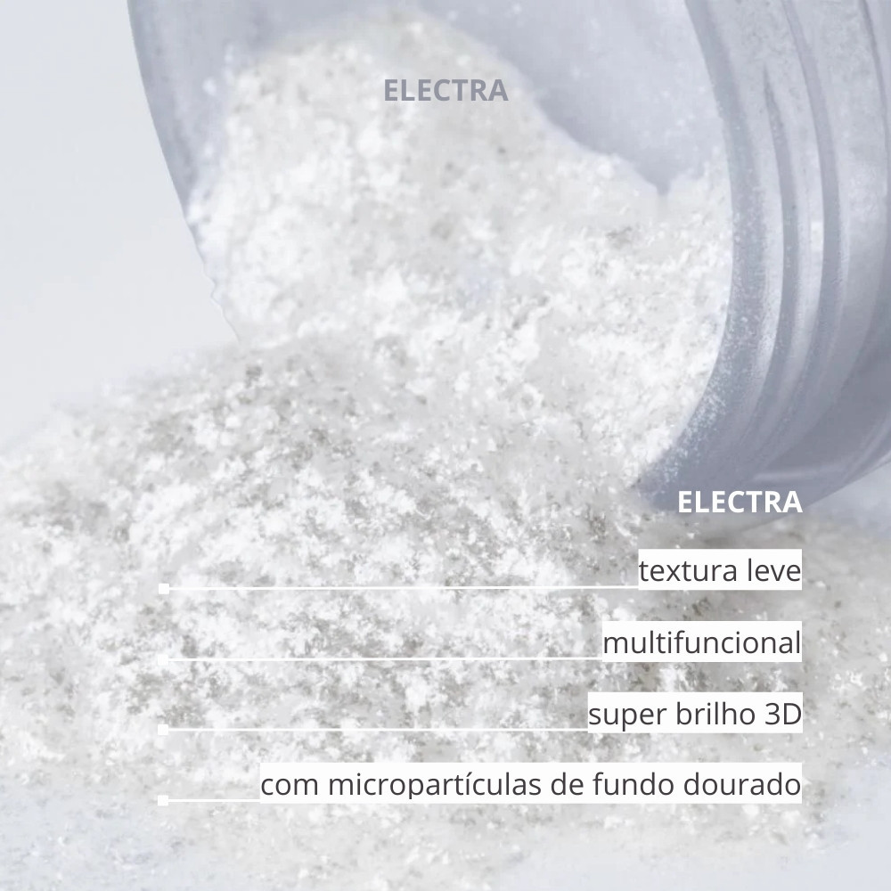 Glitter Constelação 3D 1,5g – Make More Descrição: Constelação 3D é a linha da Make More especializada em Glitters e Pigmentos para produzir luminosidade total ou pontos de luz, cor, efeito cintilante, holográfico e marcante aos olhos. O Glitter possui em sua fórmulação micropartículas de brilho com alta refração de luz e textura leve. De fácil aplicação, pode ser usado como sombra, reforçador de luminosidade e pontos de efeito. Linha Constelação 3D - Cada cor possui o nome de uma estrela especial da constelação. Disponível em 2 cores: - Antares: Micropartículas de fundo prata; - Electra: Micropartículas de fundo dourado. Diferenciais do Produto: - Super brilho 3D; - Textura leve; - Fácil aplicação; - Multifuncional; - Com micropartículas de brilho; - Dermatologicamente testado; - Não testado em animais; - Livre de parabenos; - Livre de glúten; - Produto 100% vegano. Modo de Uso: Com o auxílio de um pincel ou com a ponta dos dedos em toques leves, deposite o glitter no local desejado. Não aplicar o produto em pele irritada ou lesionada. Especificações: Contém 1,5g.