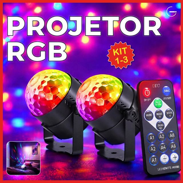 Globo de Luz Led RGB Com Efeito com Controle Remoto e Modos de Luzes Projetor de Luz
